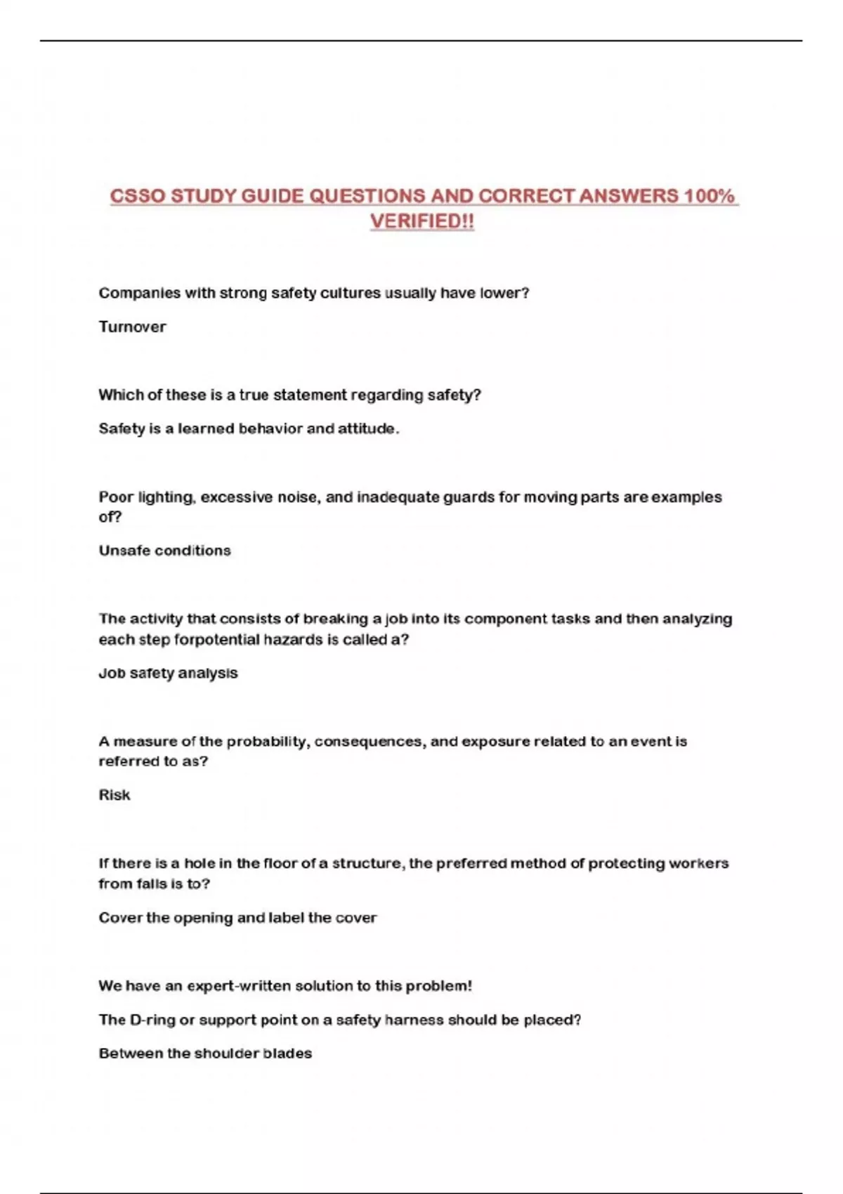 csso study guide questions and correct answers