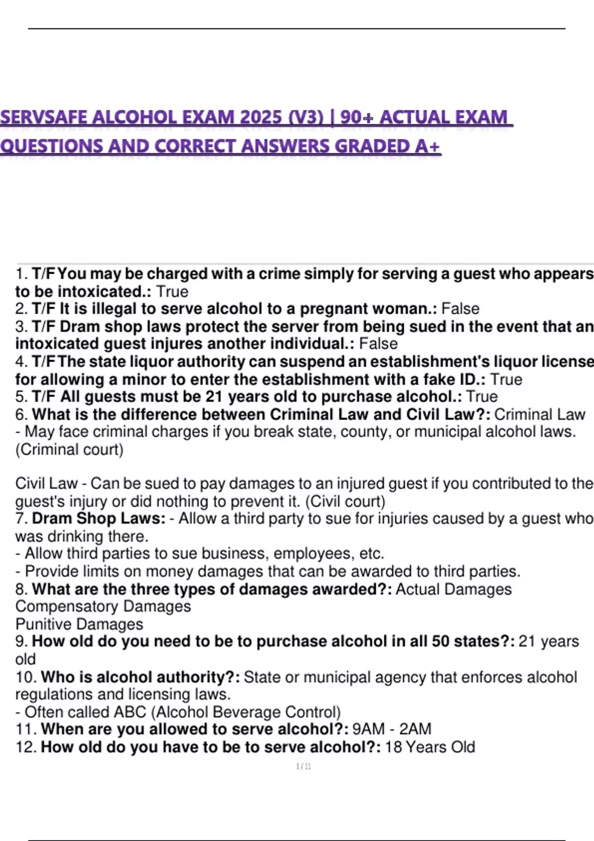 5. T/F All guests must be 21 years old to purchase alcohol.: True