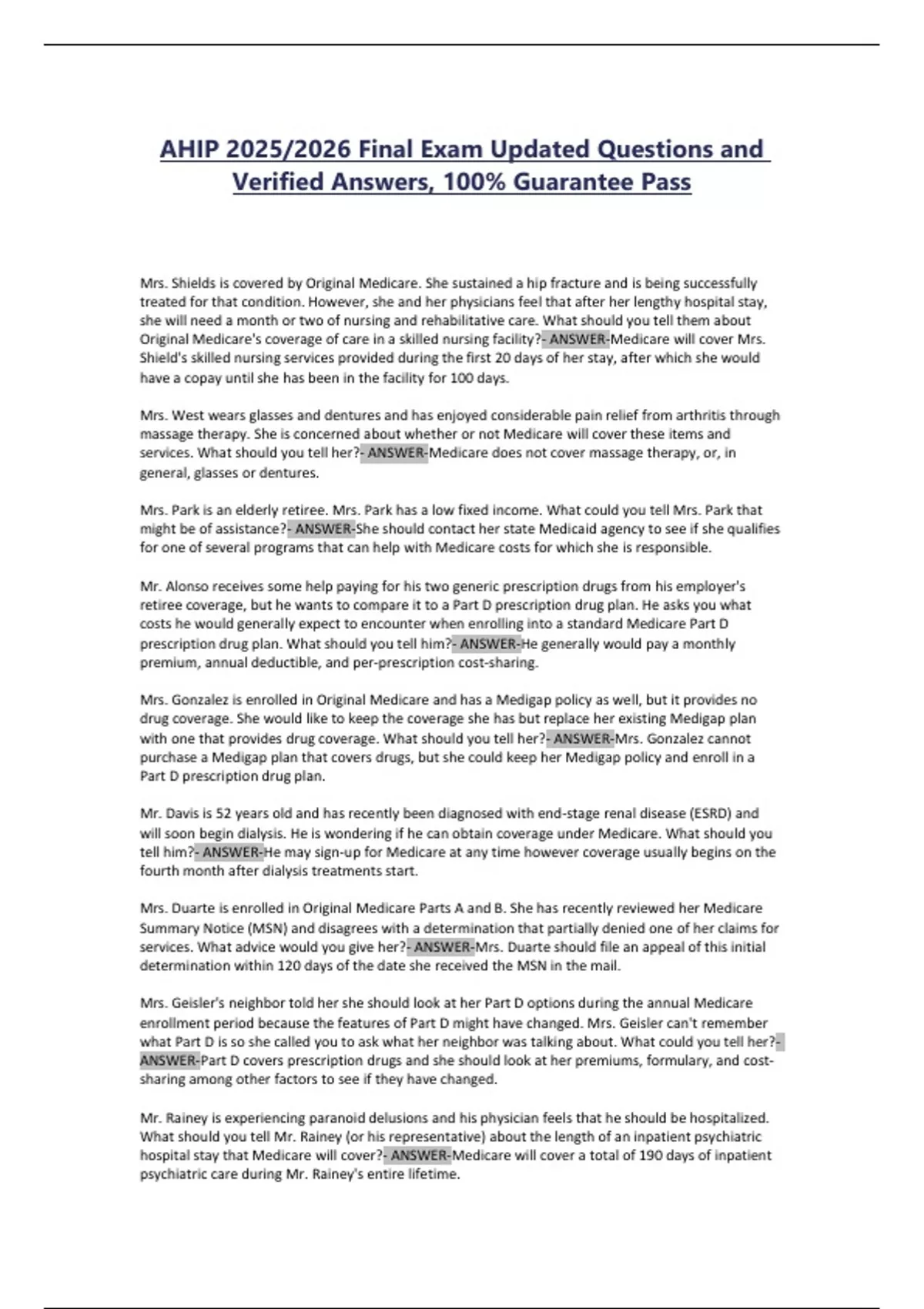 AHIP 2025/2026 Final Exam Updated Questions and Verified Answers, 100% Guarantee Pass
