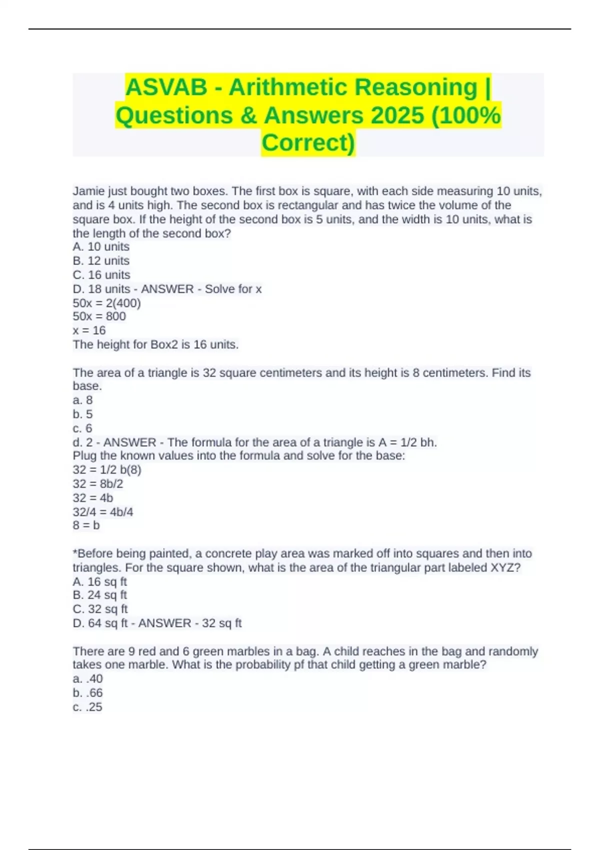 d. 2 - ANSWER - The formula for the area of a triangle is A = 1/2 bh.
