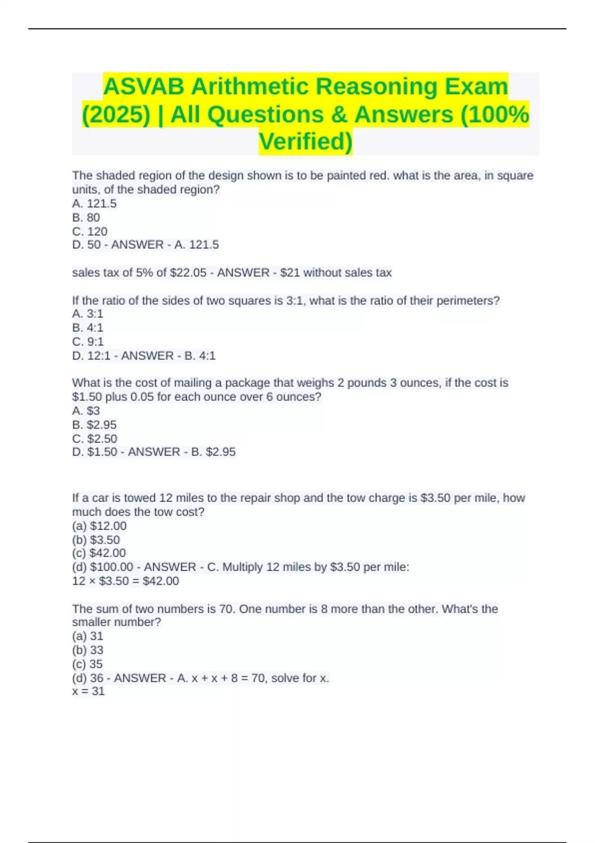 (d) 36 - ANSWER - A. x + x + 8 = 70, solve for x.