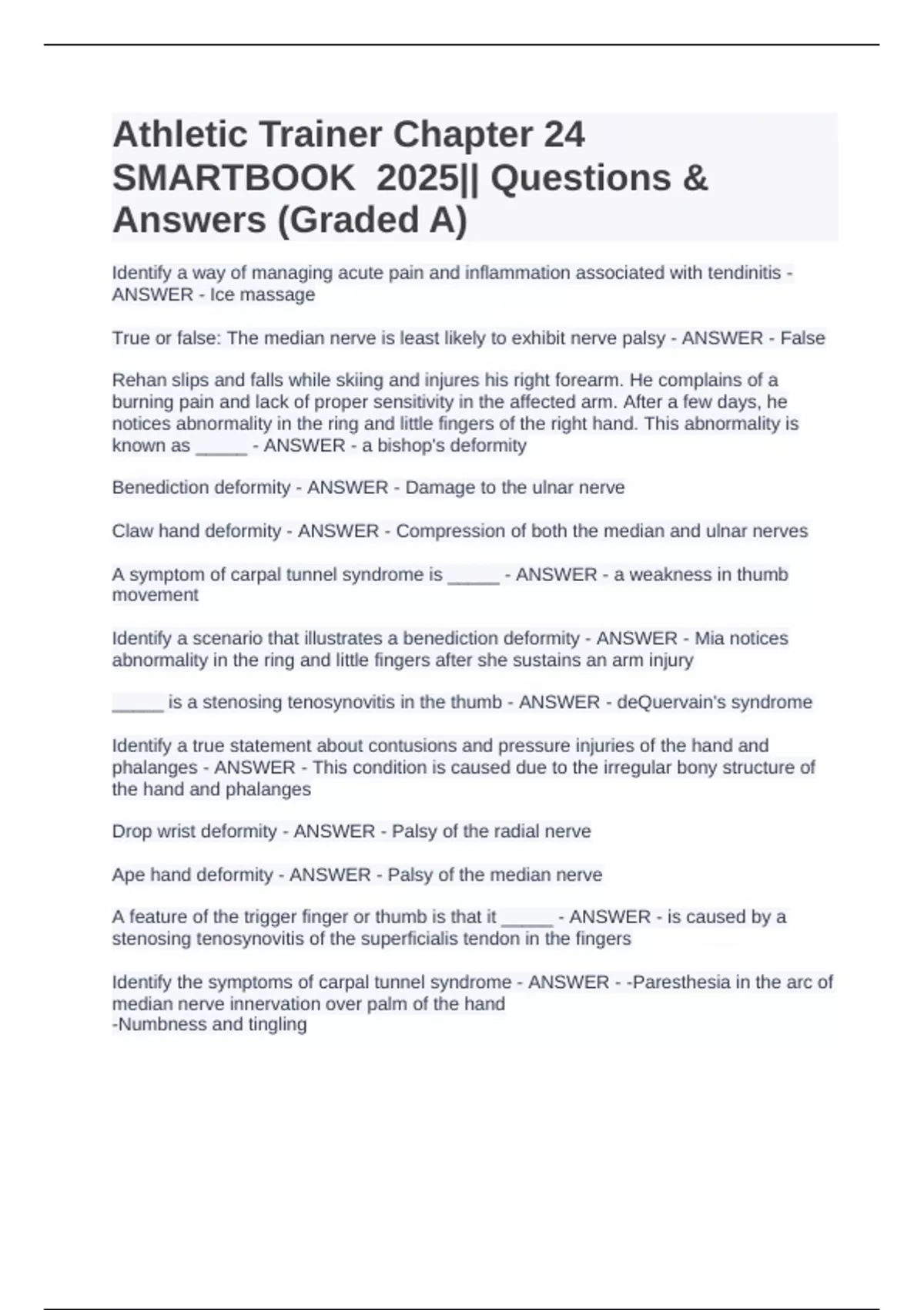Athletic Trainer Chapter 24 SMARTBOOK 2025|| Questions & Answers (Graded A)