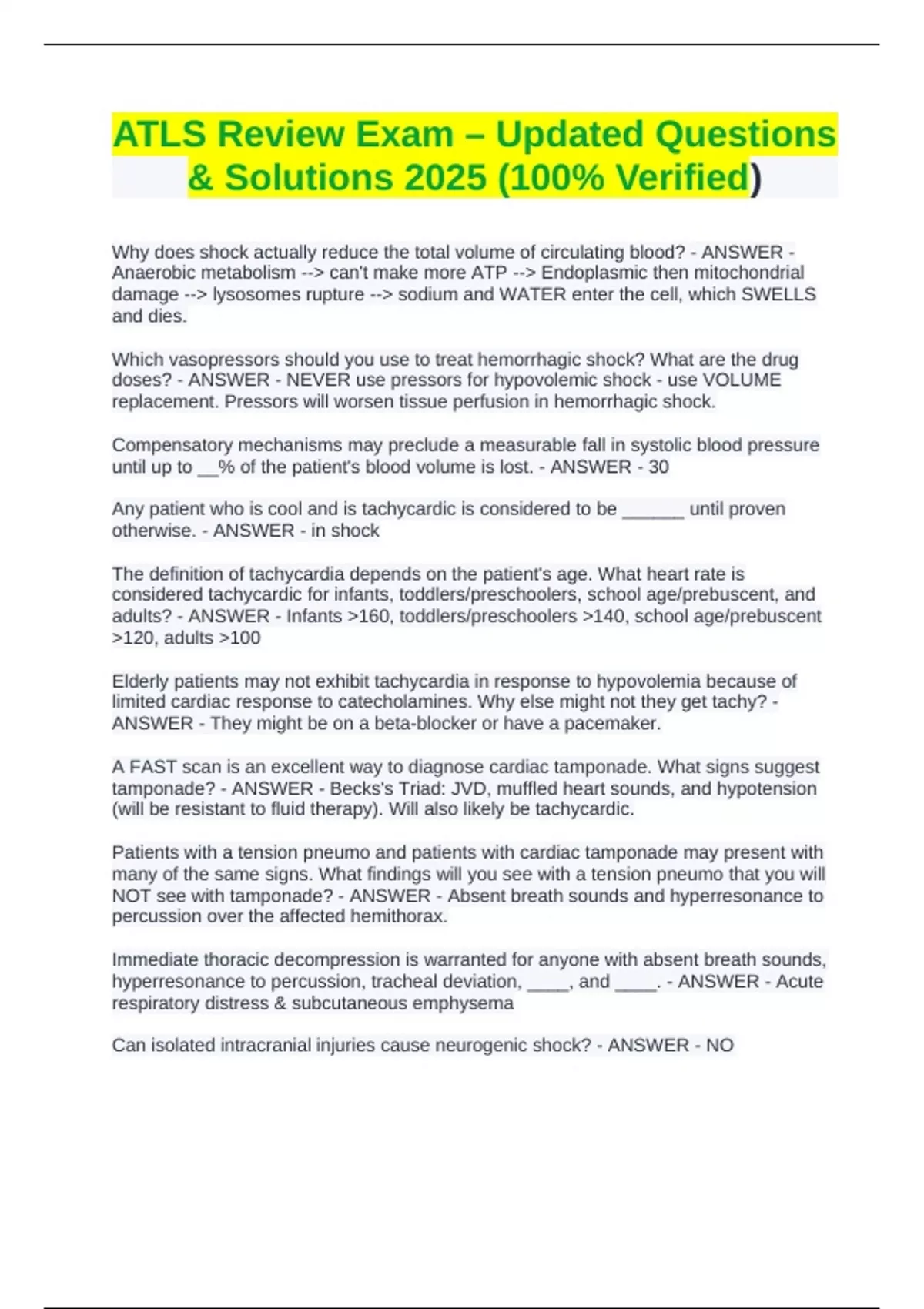 ATLS Review Exam – Updated Questions
