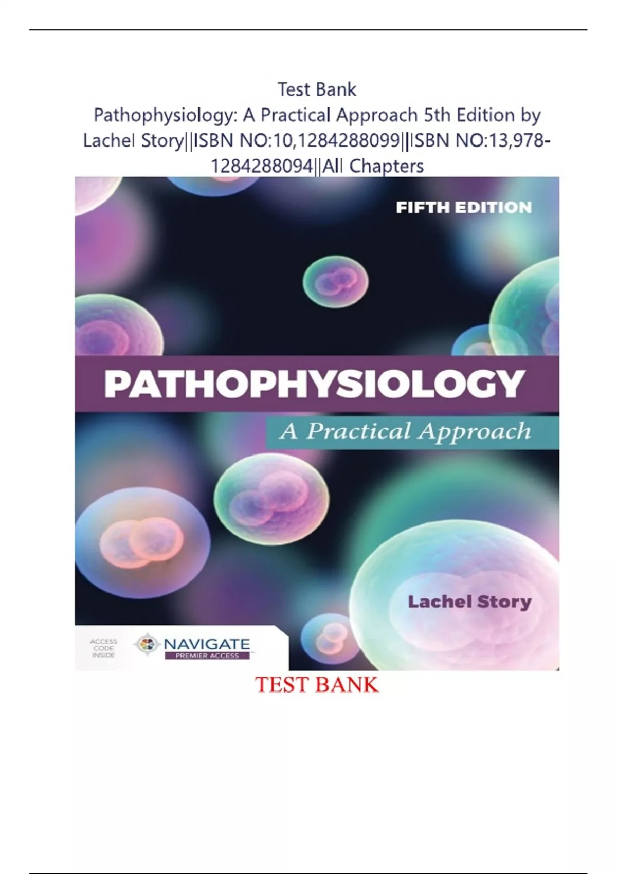Pathophysiology: A Practical Approach 5th Edition by Lachel Story TEST BANK||ISBN NO:10,1284288099||ISBN NO:13,978-1284288094||All Chapters