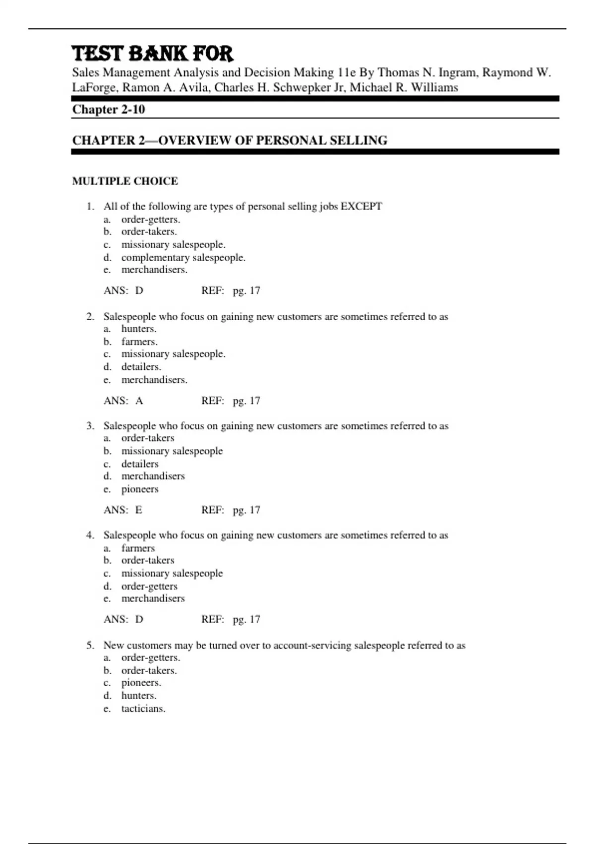 Test Bank For Sales Management Analysis and Decision Making 11th Edition By Thomas N. Ingram, Raymond W. LaForge, Ramon A. Avila, Charles H. Schwepker Jr, Michael R. Williams