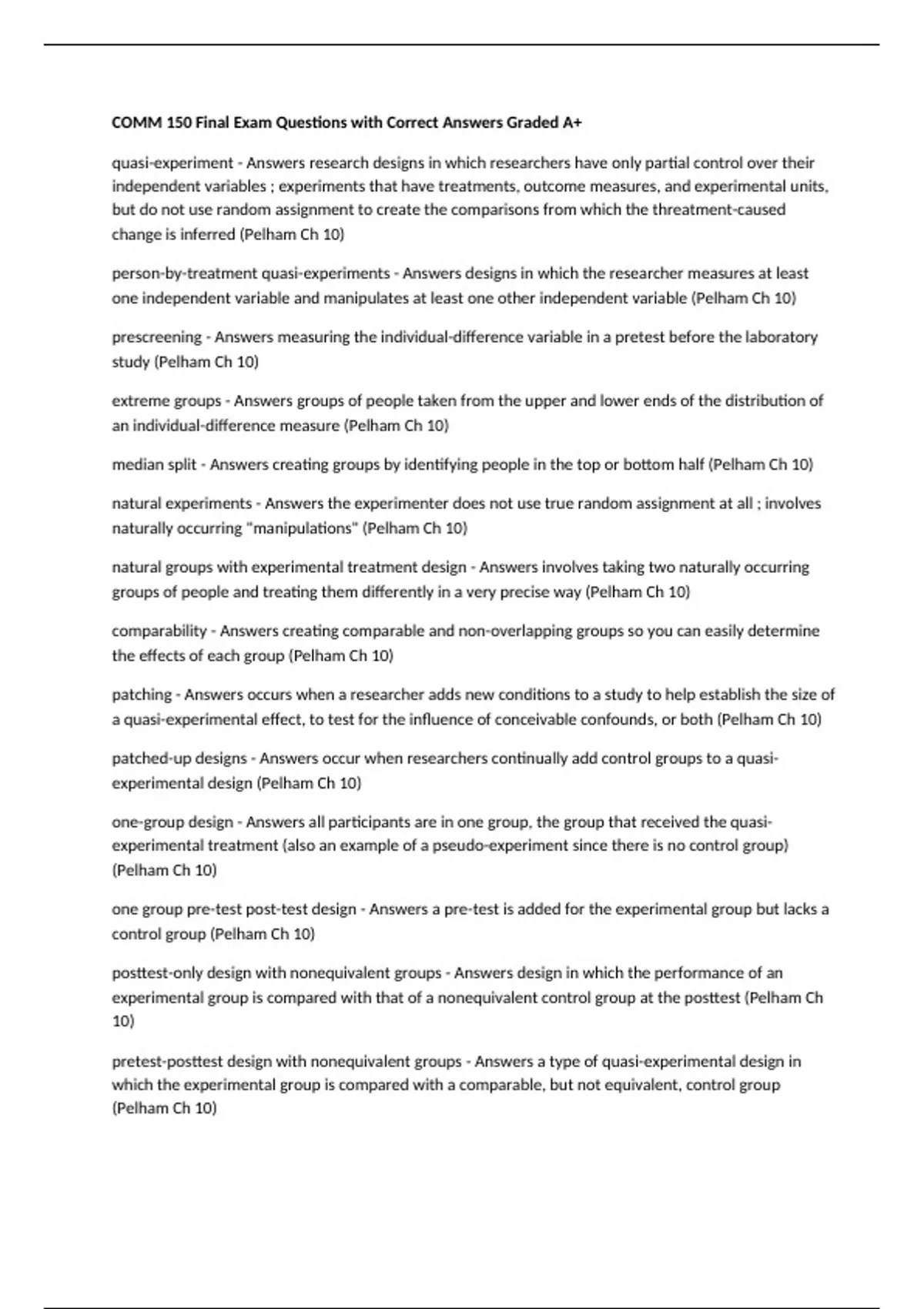 experimental group is compared with that of a nonequivalent control group at the posttest (Pelham Ch