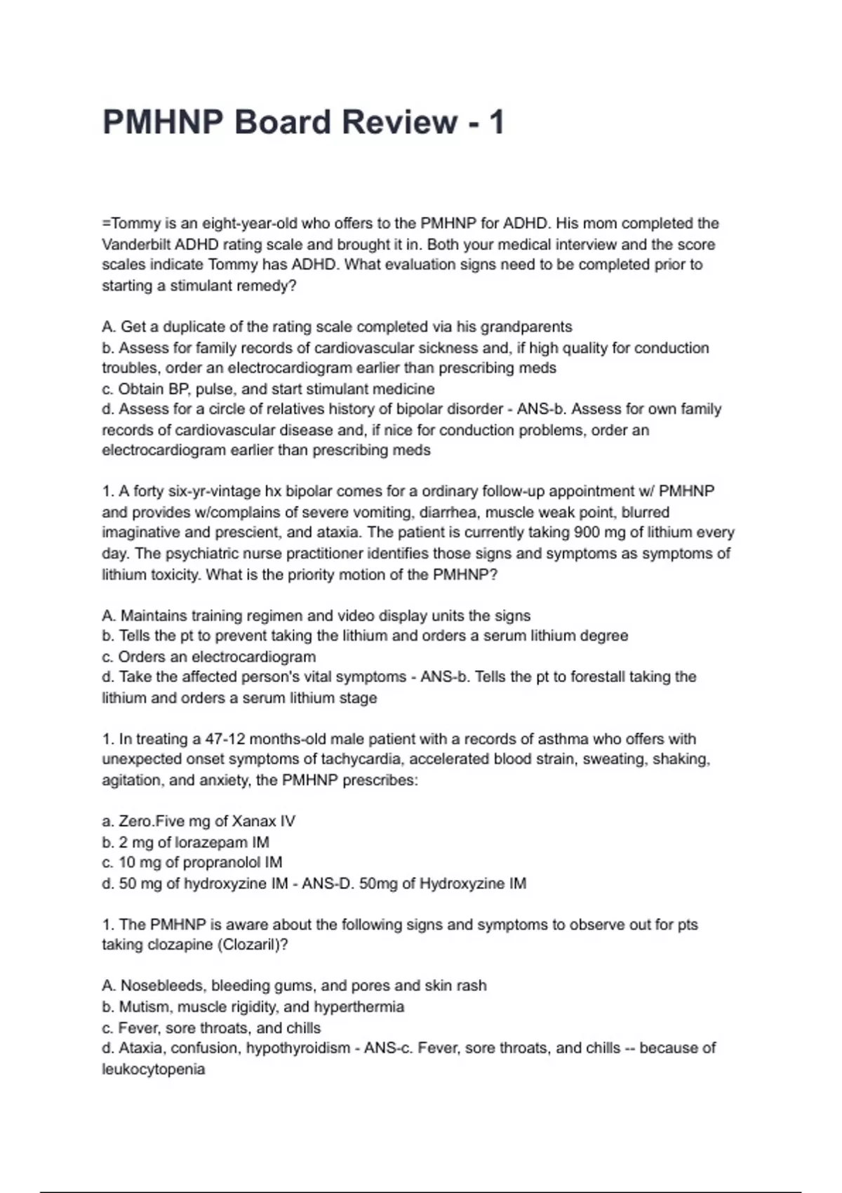 1. A forty six-yr-vintage hx bipolar comes for a ordinary follow-up appointment w/ PMHNP