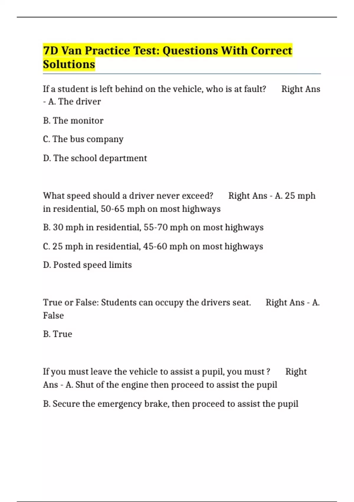 True or False: Students can occupy the drivers seat. Right Ans - A.