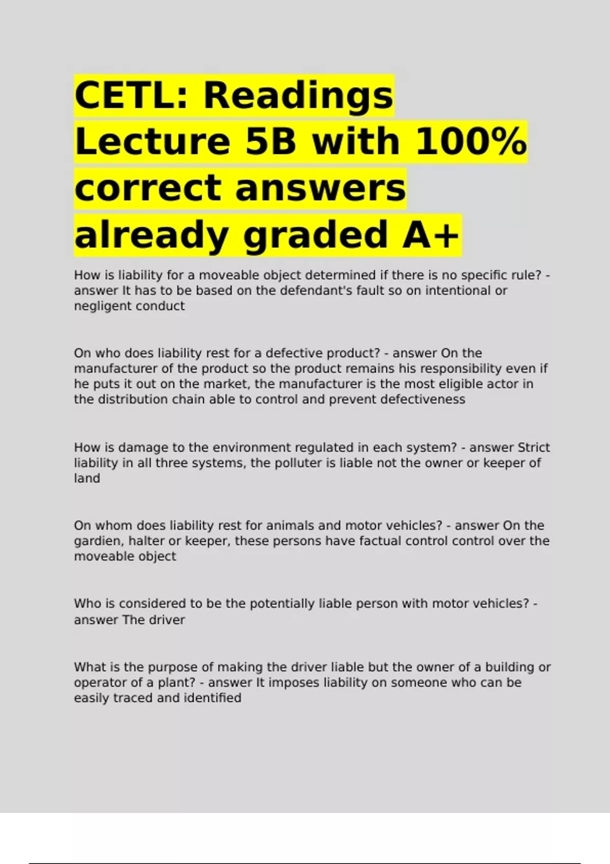 On who does liability rest for a defective product? - answer On the