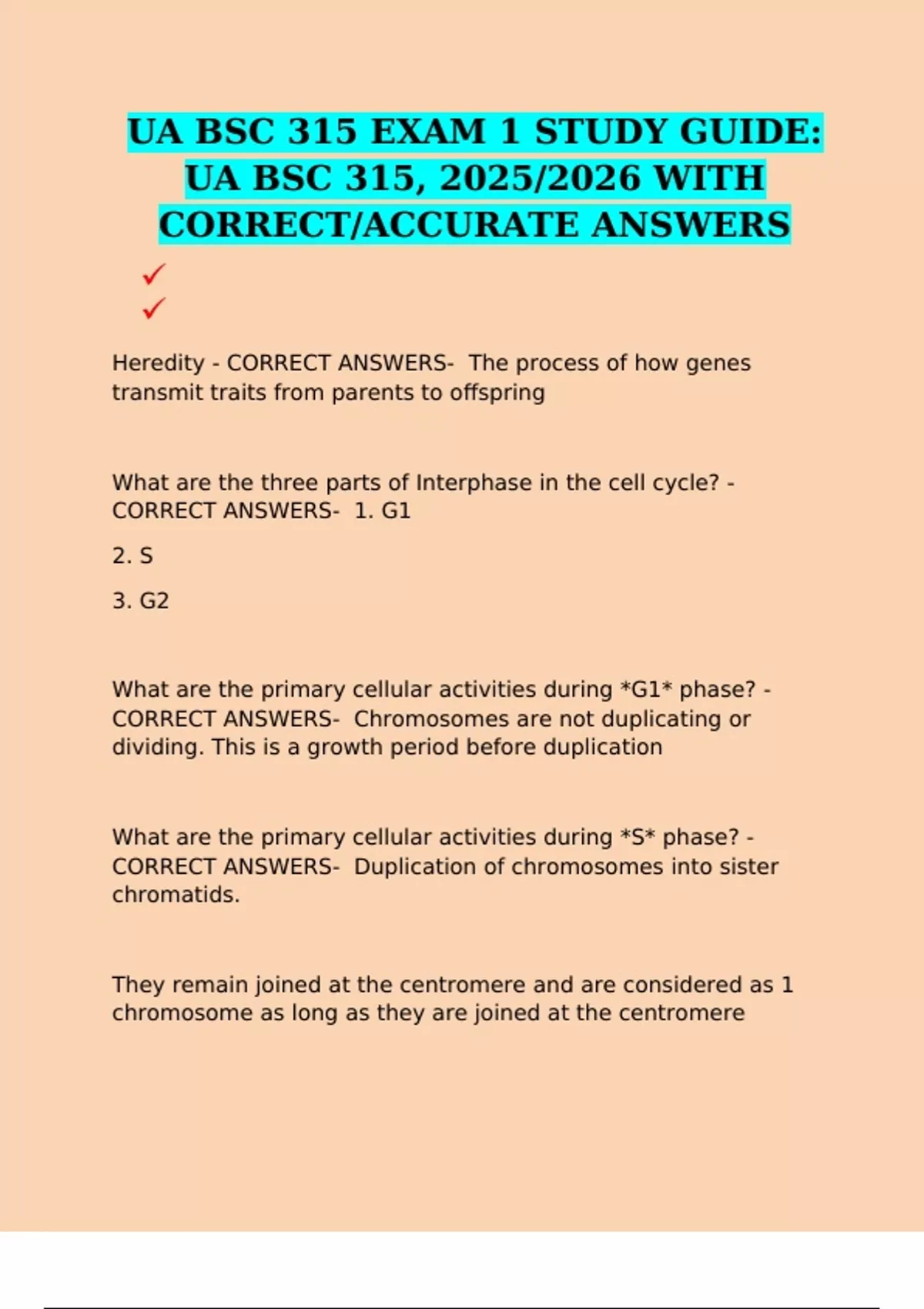 CORRECT ANSWERS- Duplication of chromosomes into sister