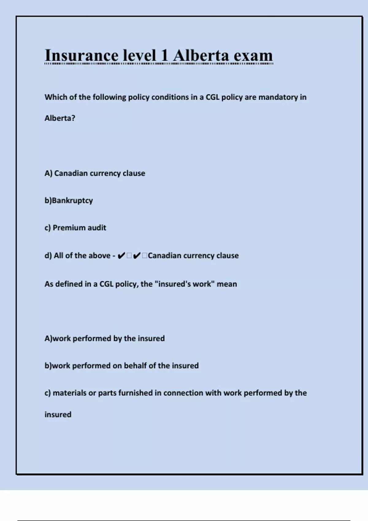 d) All of the above - ✔ ✔ Canadian currency clause