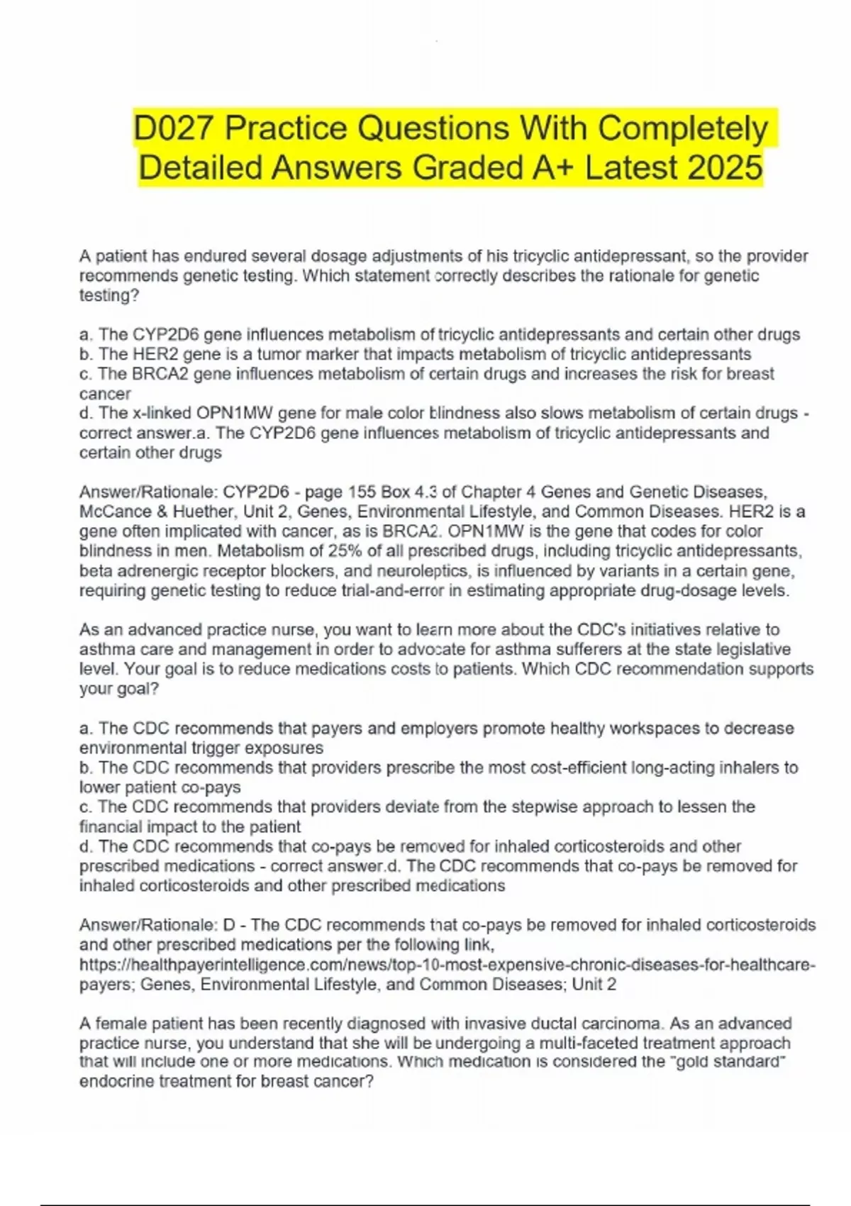 D027 Practice Questions With Completely Detailed Answers Graded A+ Latest 2025 package deal