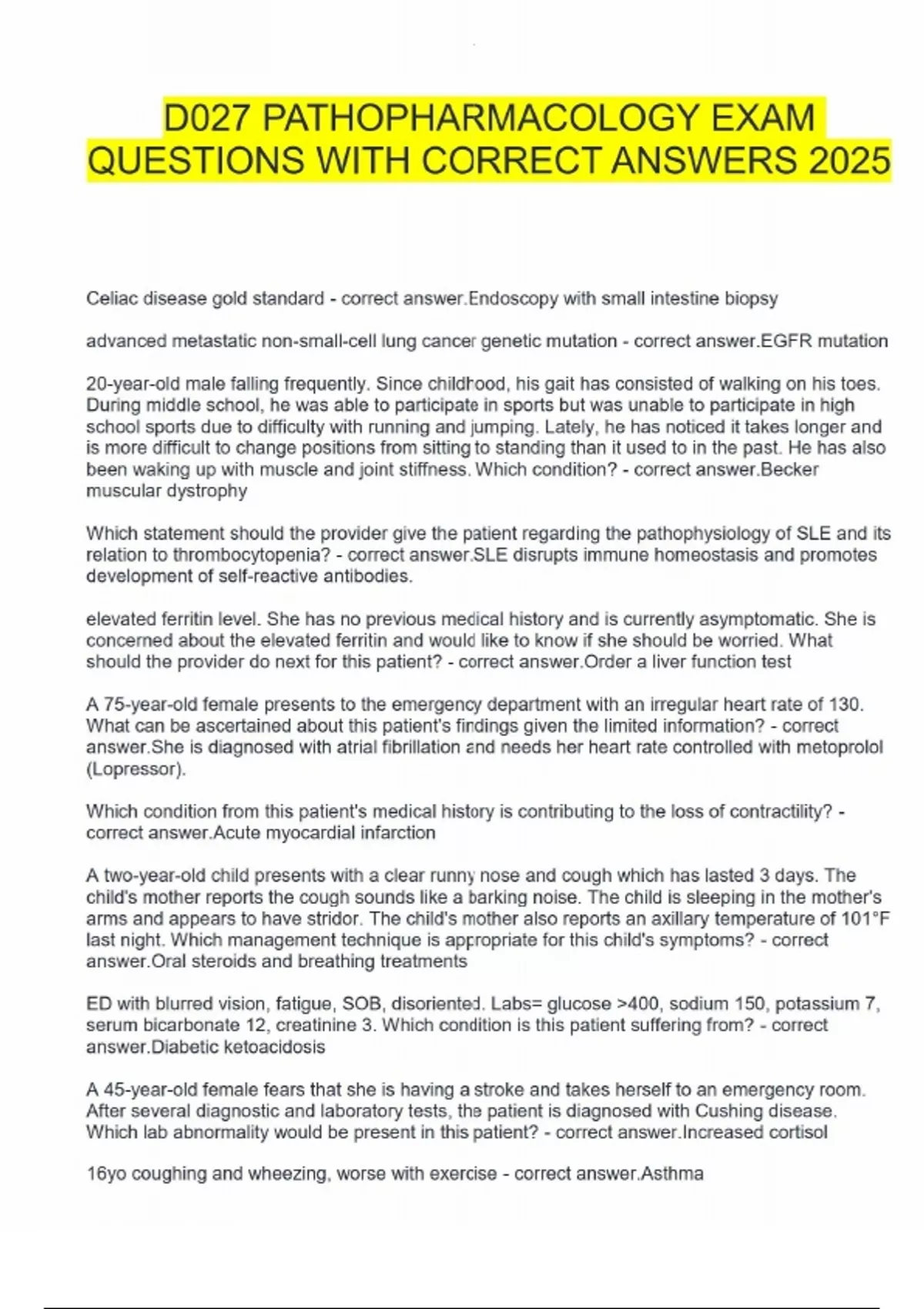 D027 PATHOPHARMACOLOGY EXAM QUESTIONS WITH CORRECT ANSWERS 2025