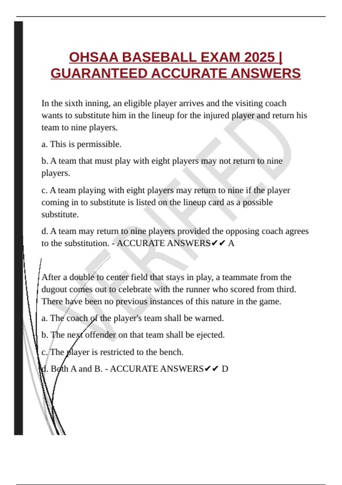 OHSAA BASEBALL EXAM 2025 |GUARANTEED ACCURATE ANSWERS