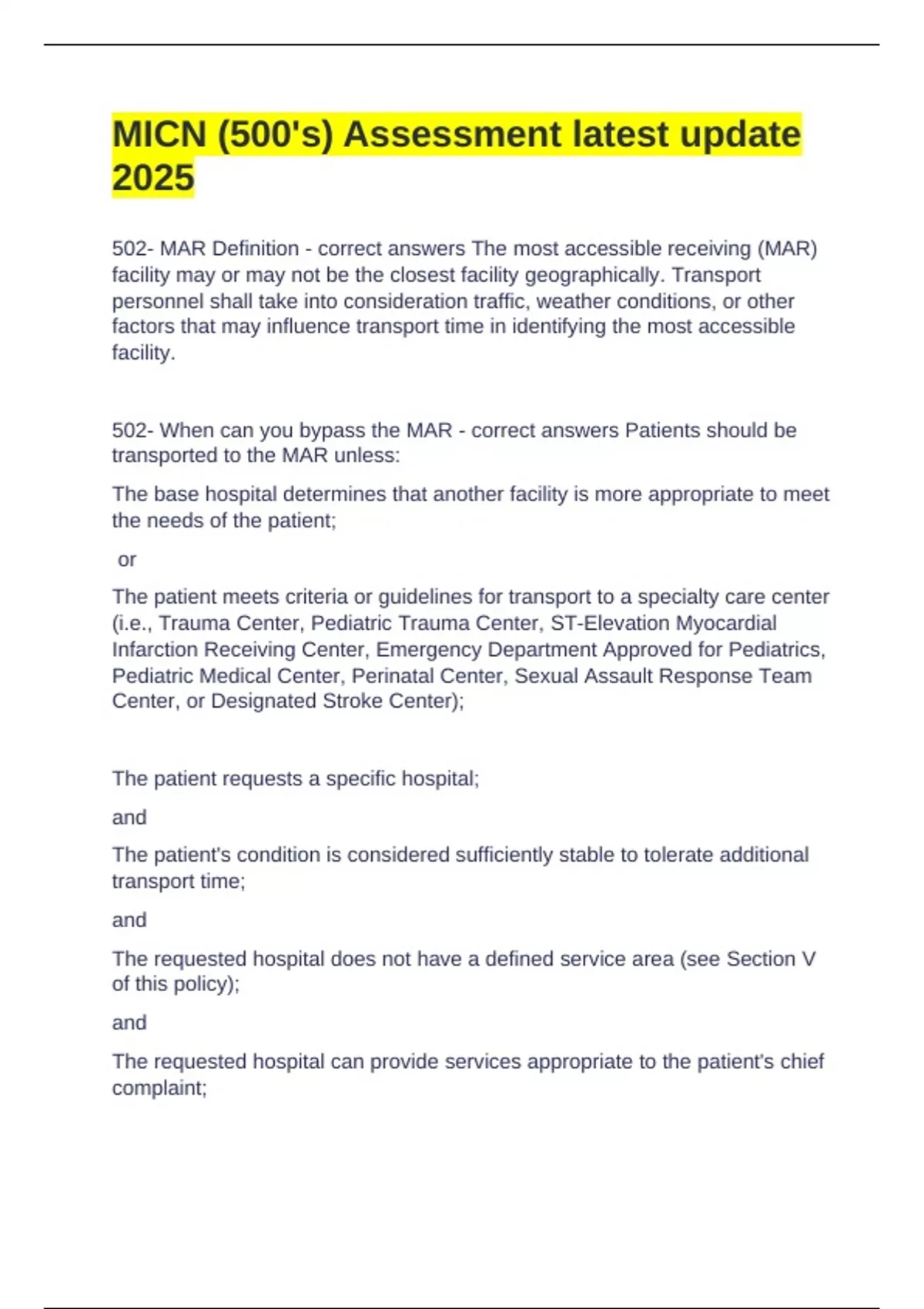 502- MAR Definition - correct answers The most accessible receiving (MAR)