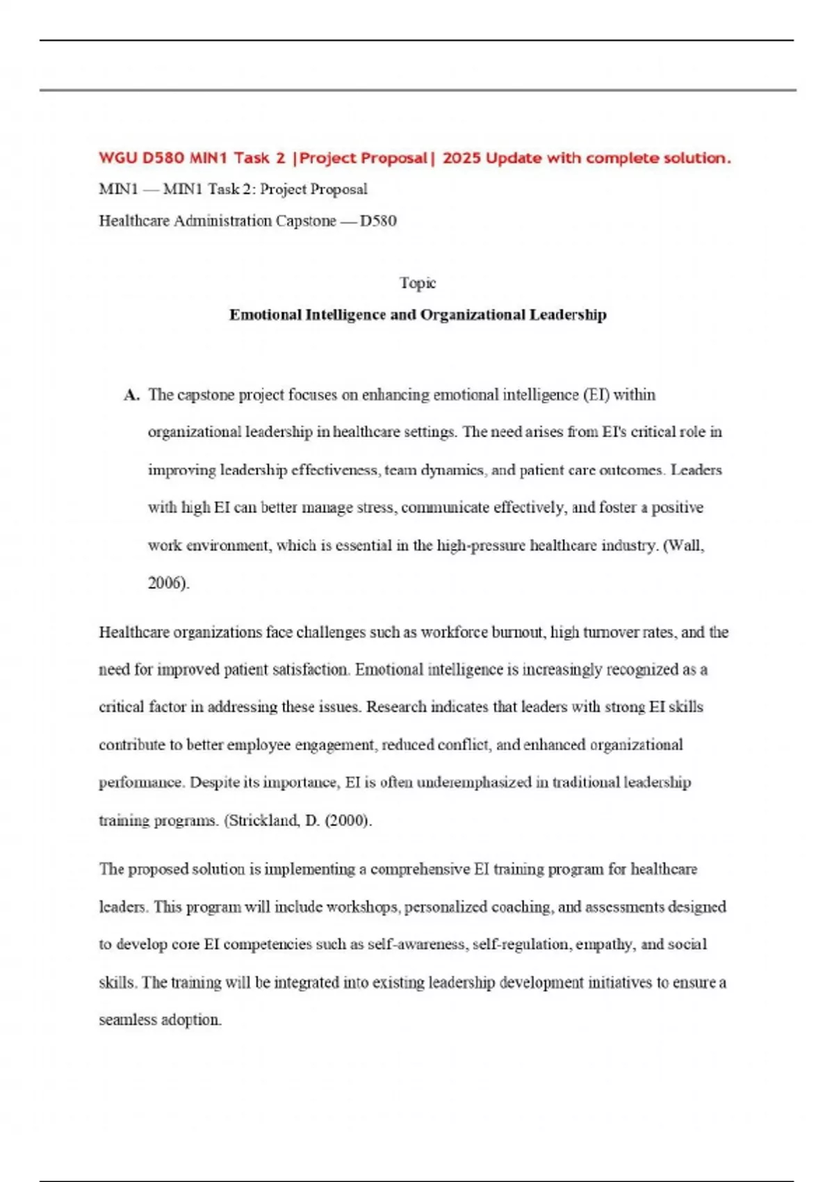 WGU D580 MIN1 Task 2 |Project Proposal| 2025 Update with complete solution.