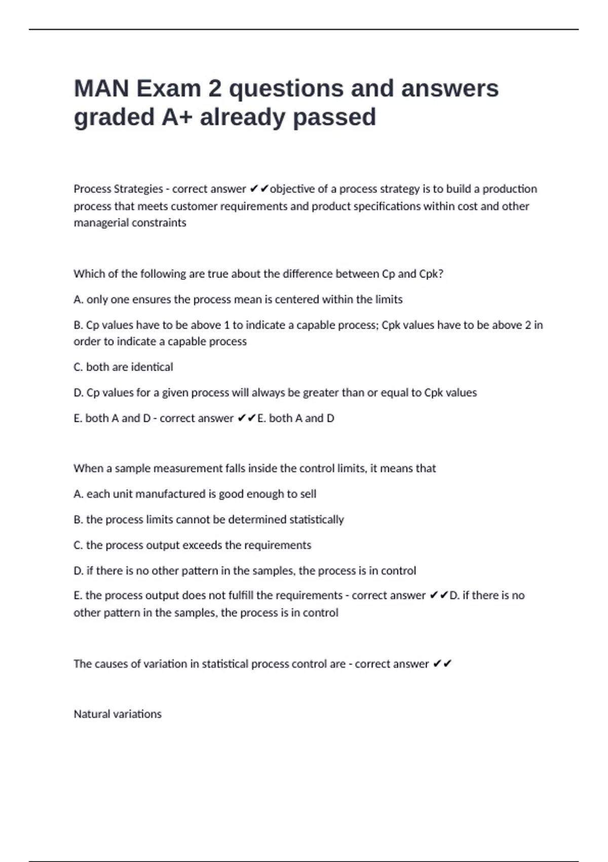 The causes of variation in statistical process control are - correct answer ✔✔