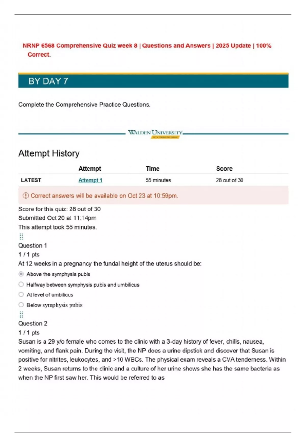 NRNP 6568 Comprehensive Quiz week 8 | Questions and Answers | 2025 Update | 100% Correct.