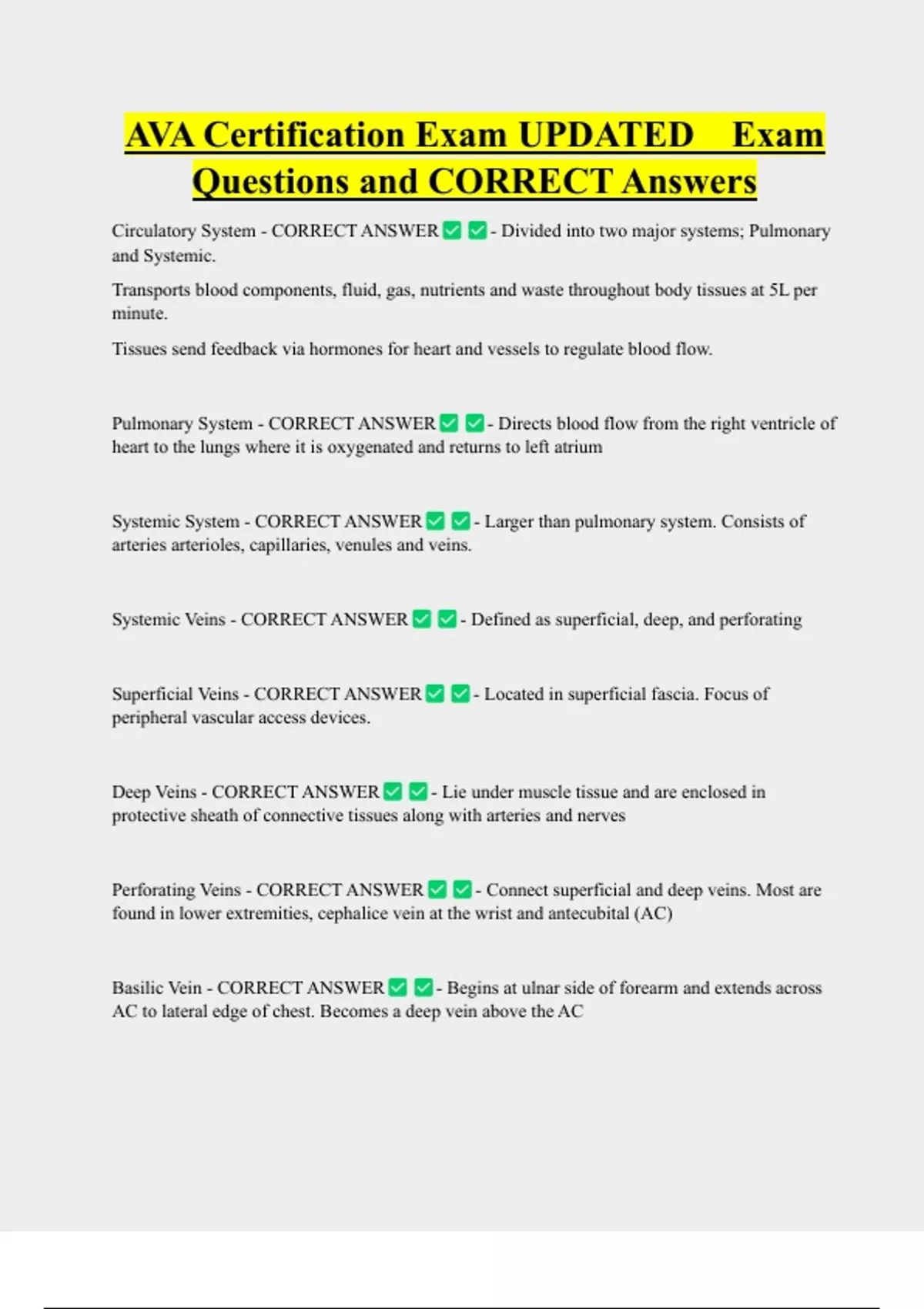 Systemic Veins - CORRECT ANSWER - Defined as superficial, deep, and perforating