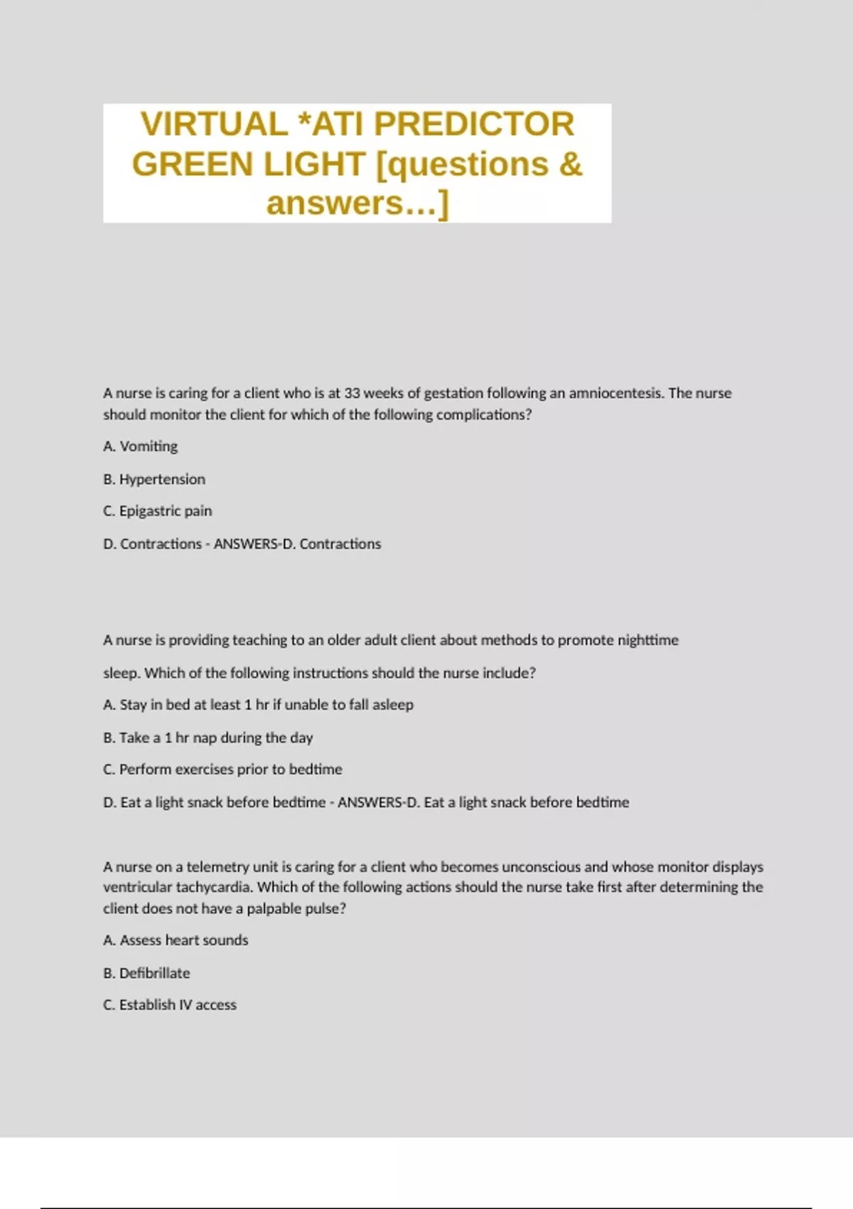 VIRTUAL *ATI PREDICTOR GREEN LIGHT [questions & answers…]
