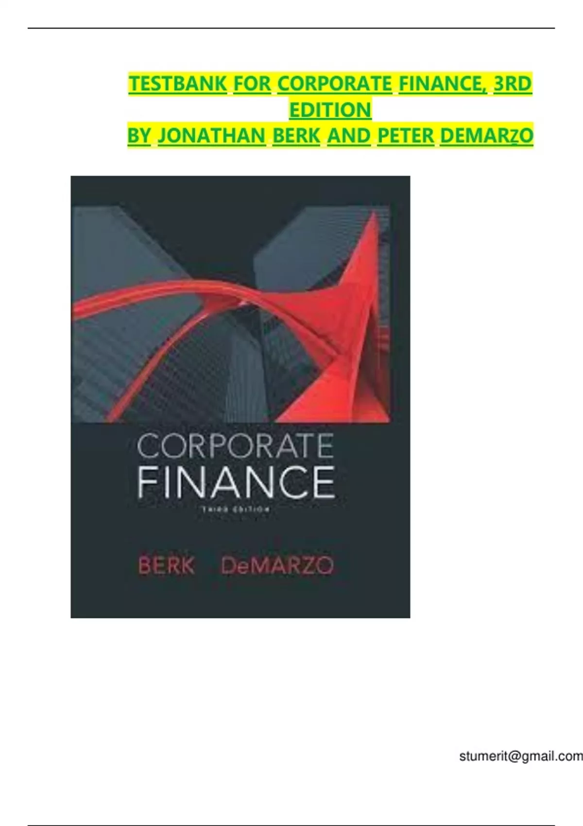 TEST BANK FOR Corporate Finance, 3rd Edition By Jonathan Berk and Peter DeMarzo | All Chapters | Latest & Updated Version A+