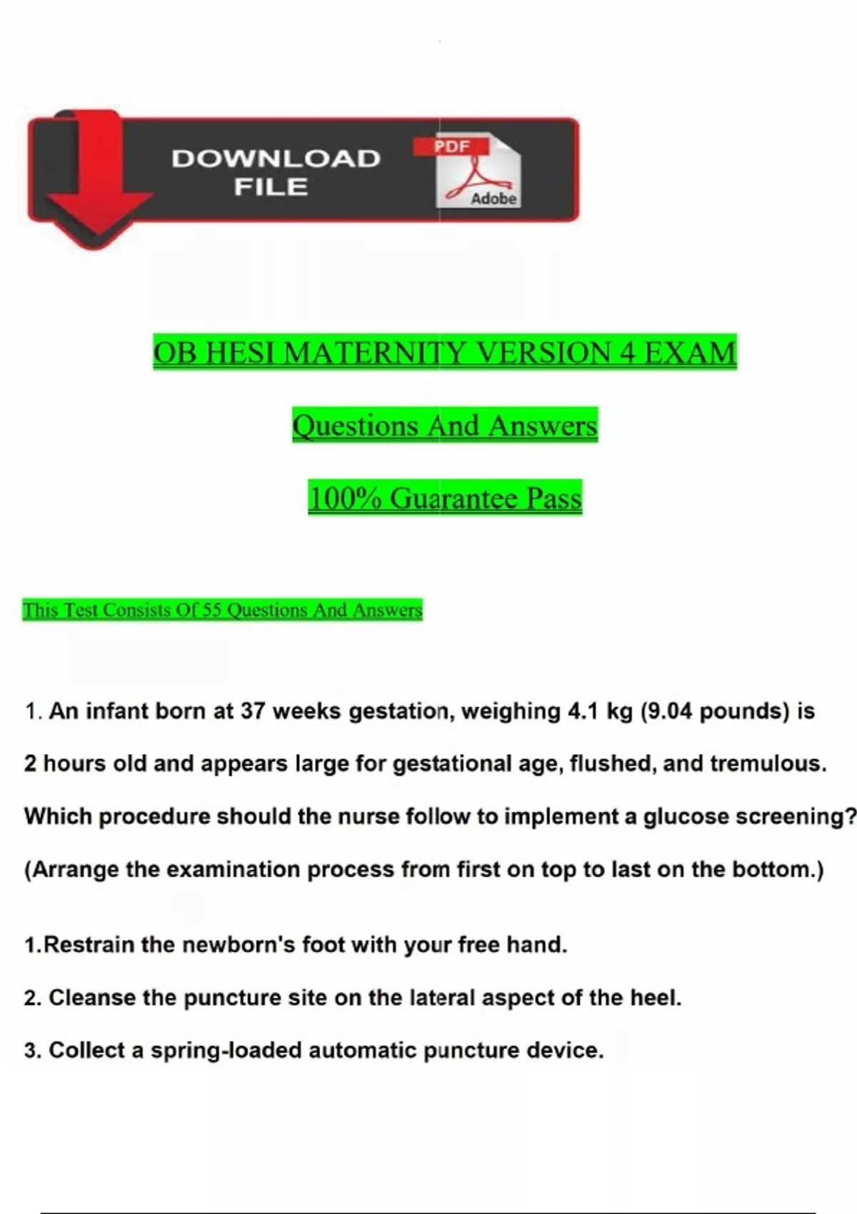 OB HESI Maternity Version 4 Exam Questions and Verified Answers OB HESI Maternity Version 4 Exam Questions and Verified Answers