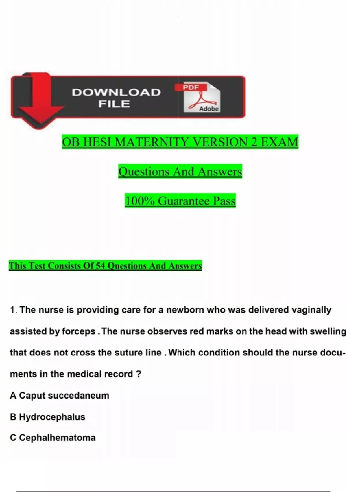 OB HESI Maternity Version 2 Exam Questions and Verified Answers OB HESI Maternity Version 2 Exam Questions and Verified Answers