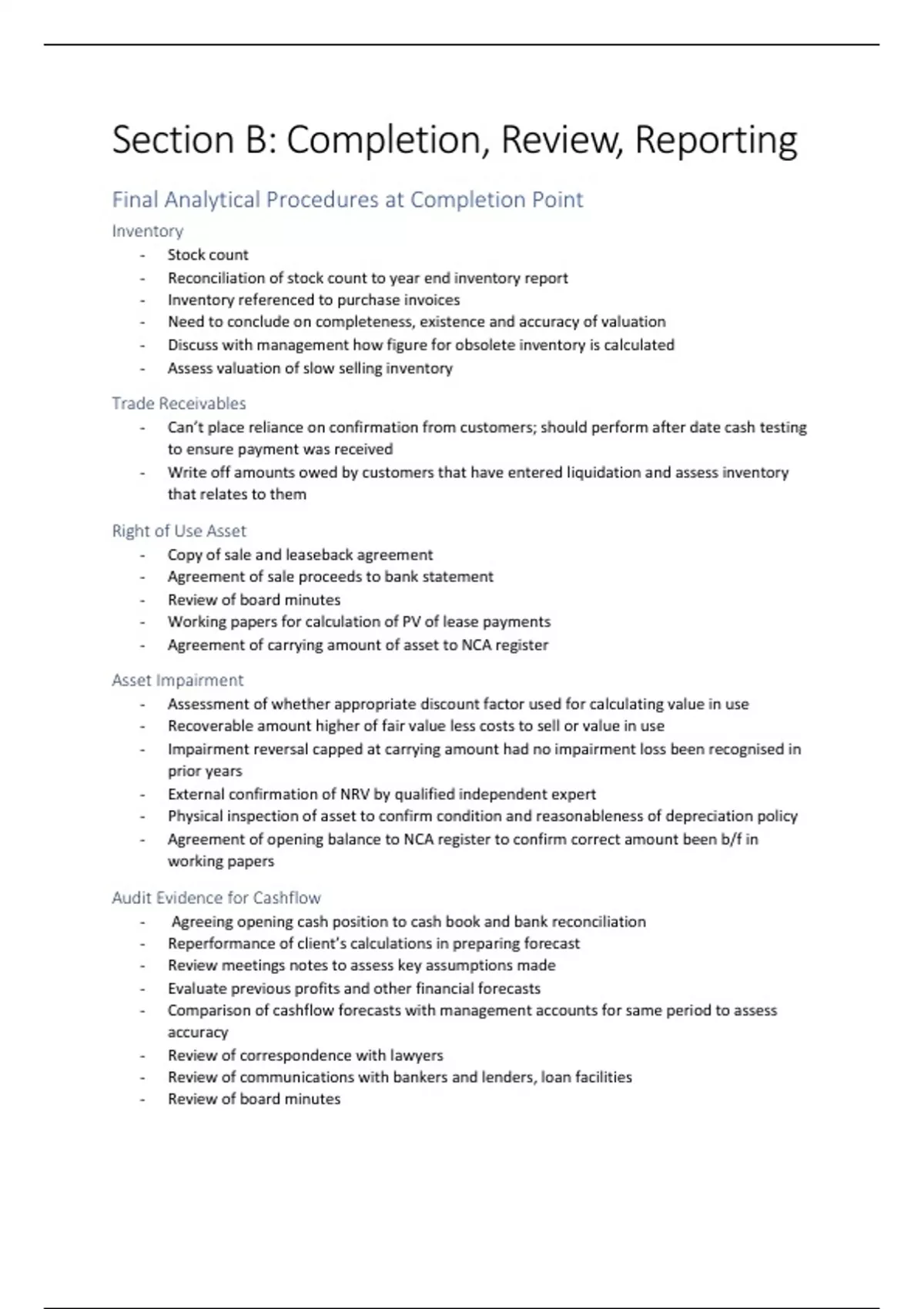 - Need to conclude on completeness, existence and accuracy of valuation