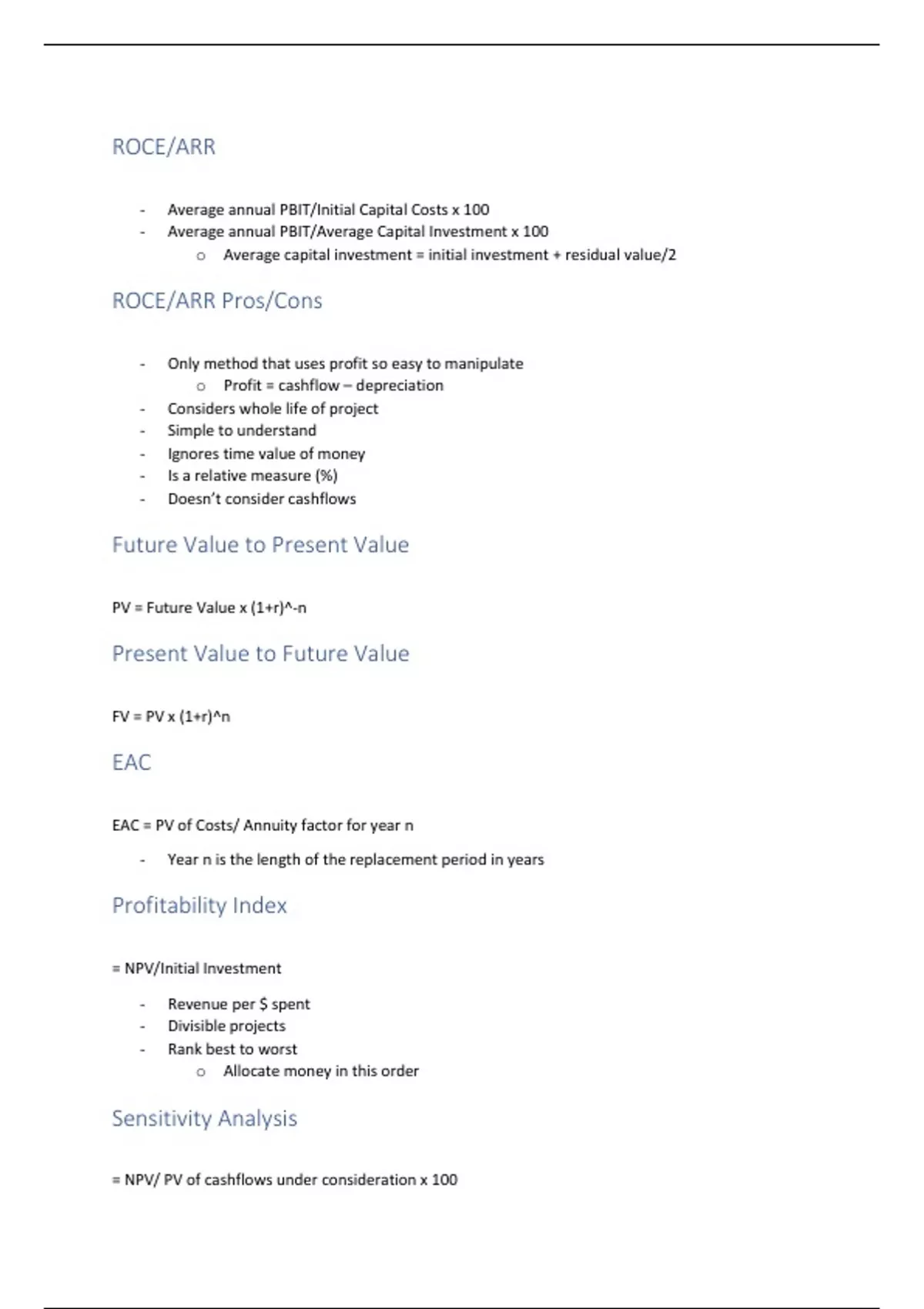 - Average annual PBIT/Initial Capital Costs x 100