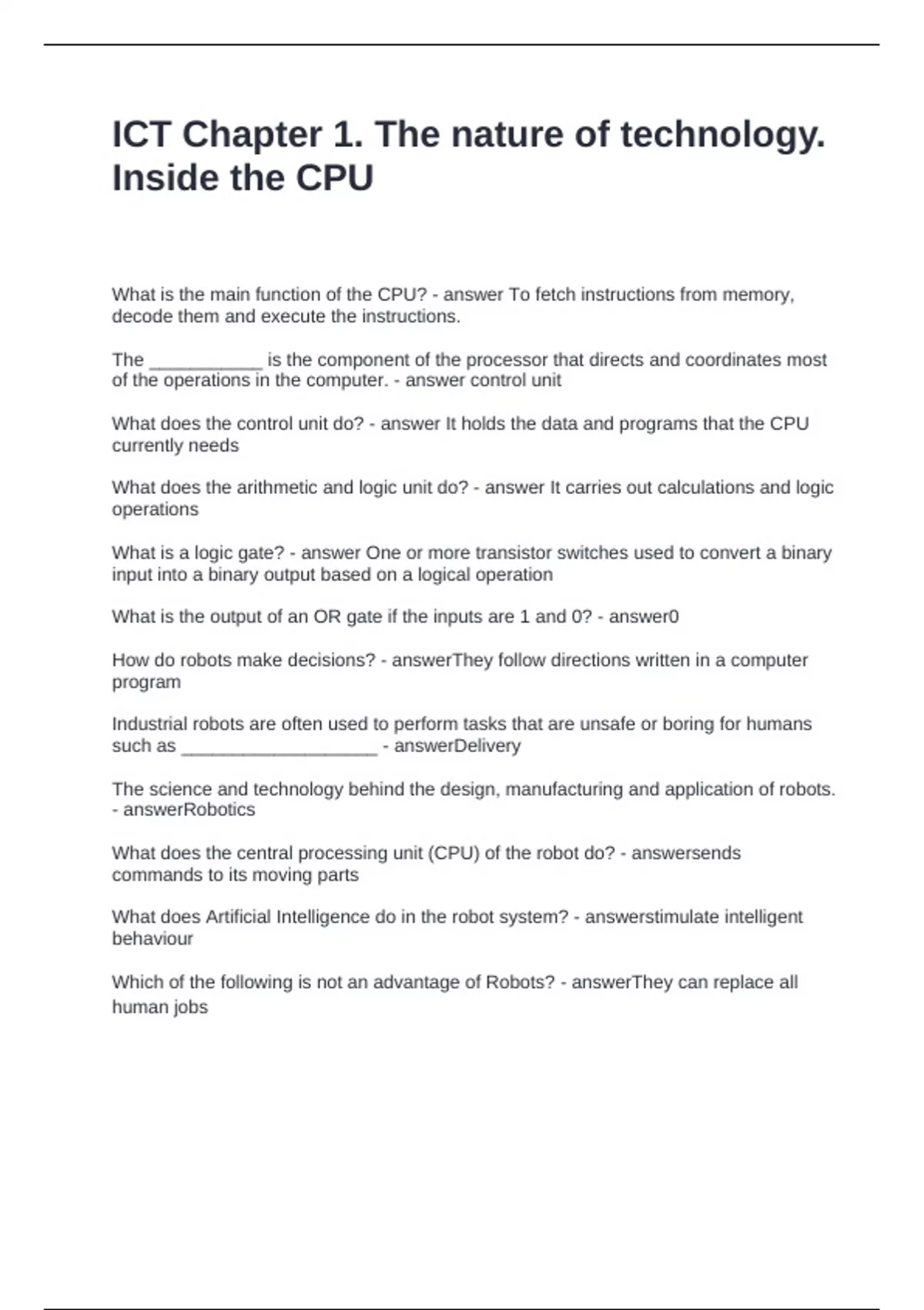What is the main function of the CPU? - answer To fetch instructions from memory,