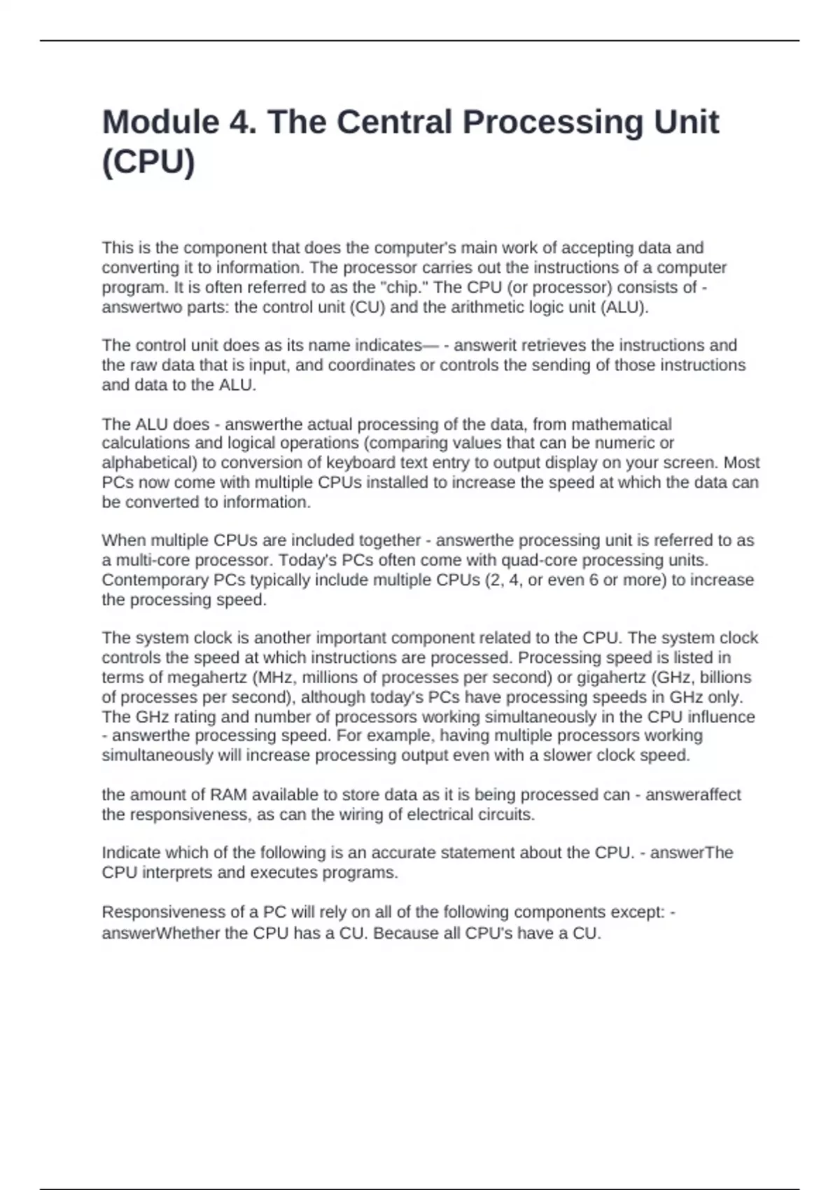 Indicate which of the following is an accurate statement about the CPU. - answerThe