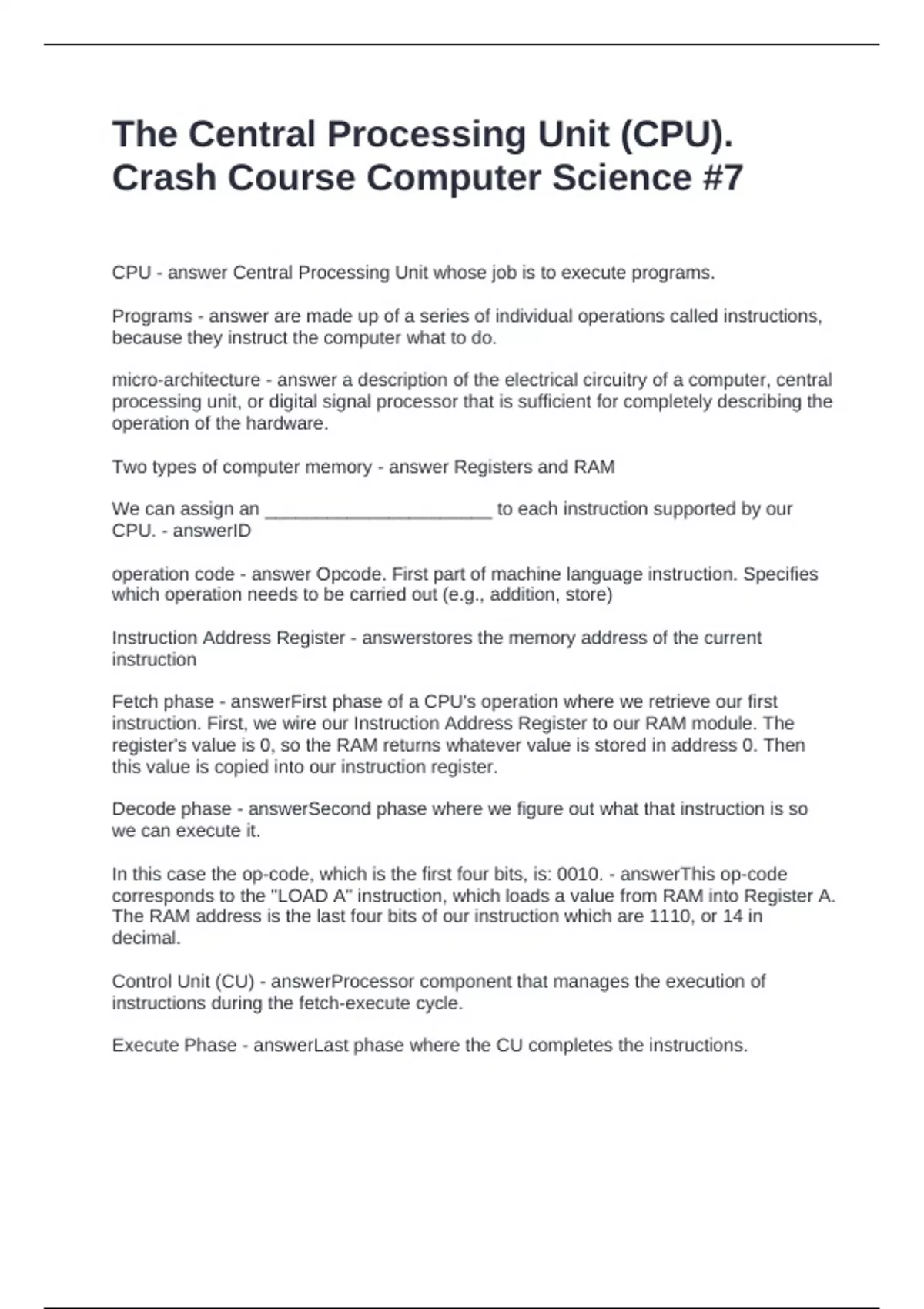 CPU - answer Central Processing Unit whose job is to execute programs.