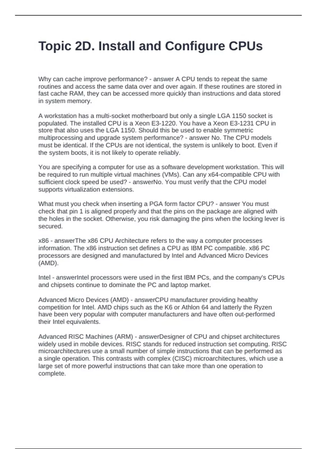 Topic 2D. Install and Configure CPUs