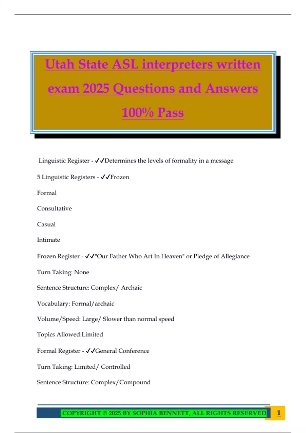COPYRIGHT © 2025 BY SOPHIA BENNETT, ALL RIGHTS RESERVED 1