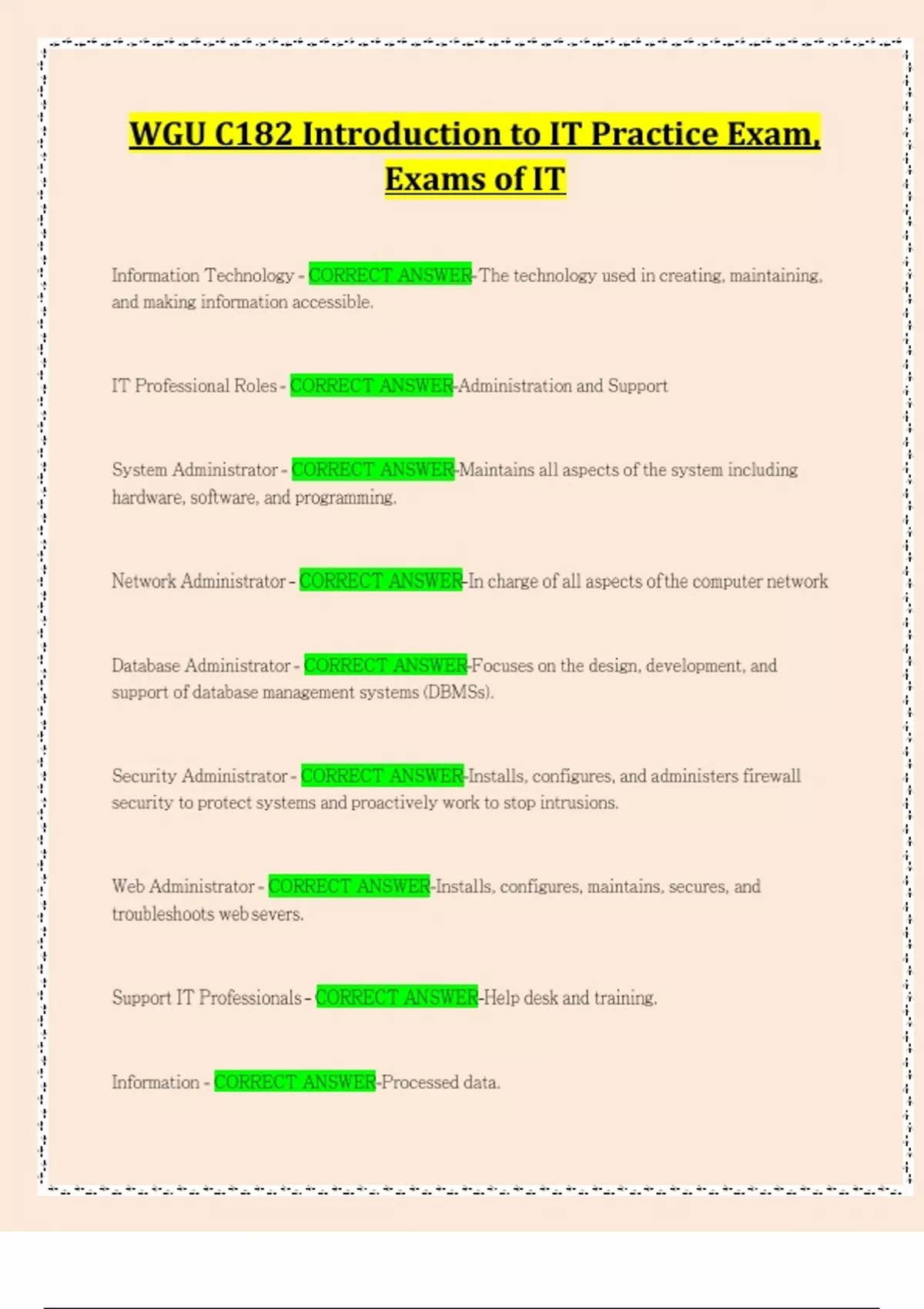 WGU C182 Introduction to IT Practice Exam, Exams of IT