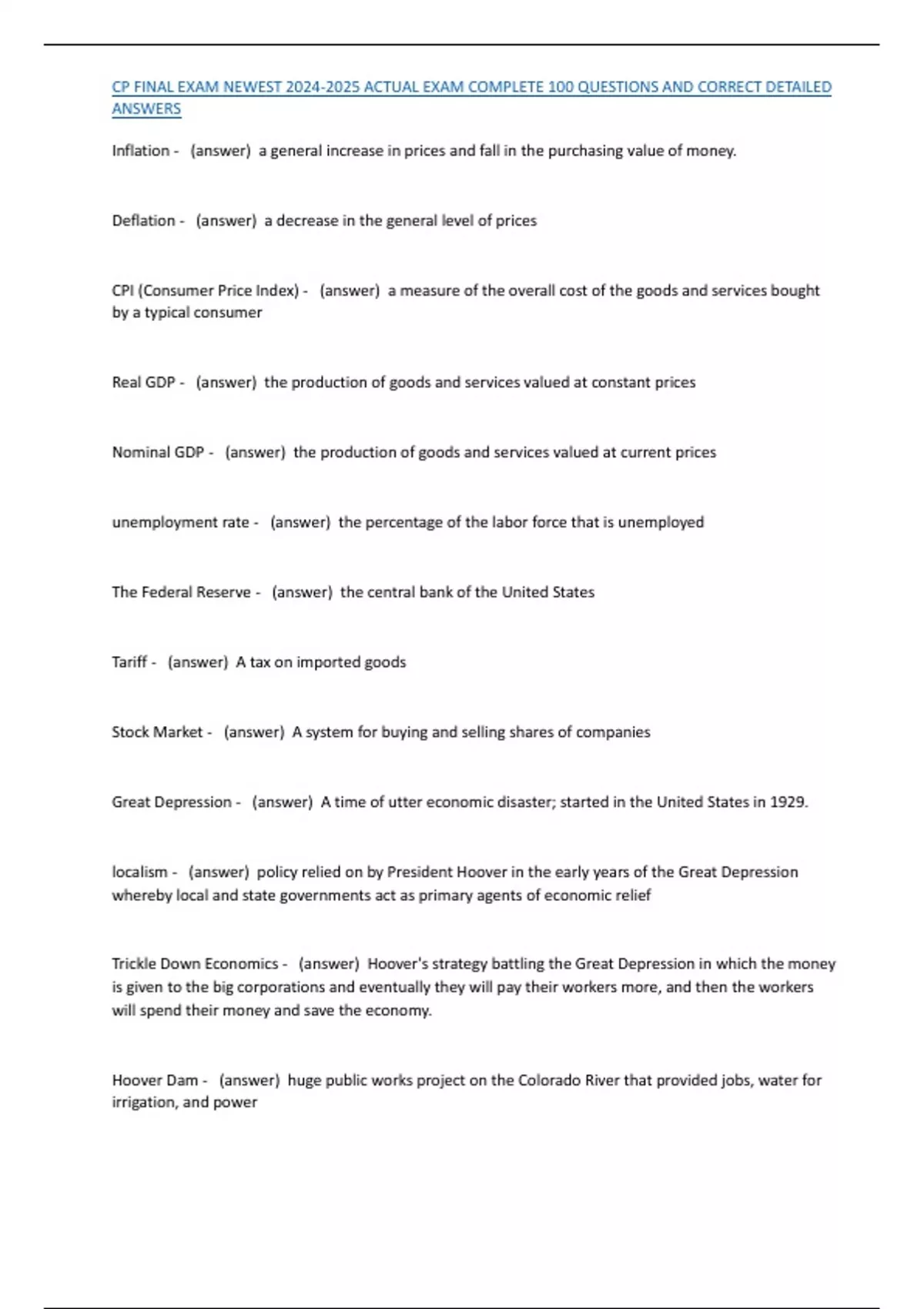 , CP FINAL EXAM NEWEST 2024-2025 ACTUAL EXAM COMPLETE 100 QUESTIONS AND CORRECT DETAILED