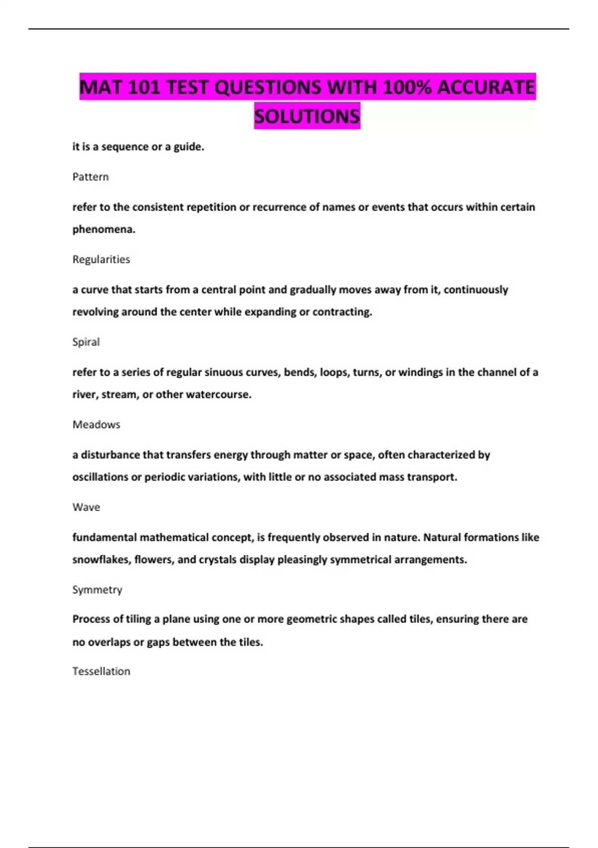 MAT 101 TEST QUESTIONS WITH 100% ACCURATE