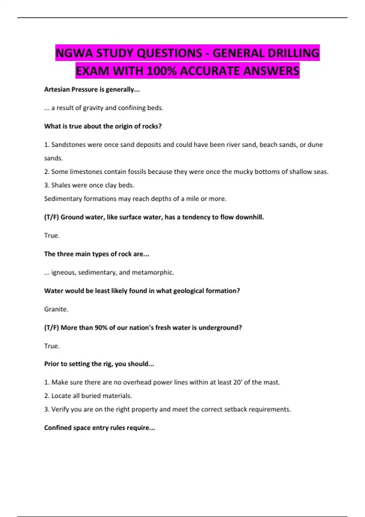 NGWA STUDY QUESTIONS - GENERAL DRILLING EXAM WITH 100% ACCURATE ANSWERS