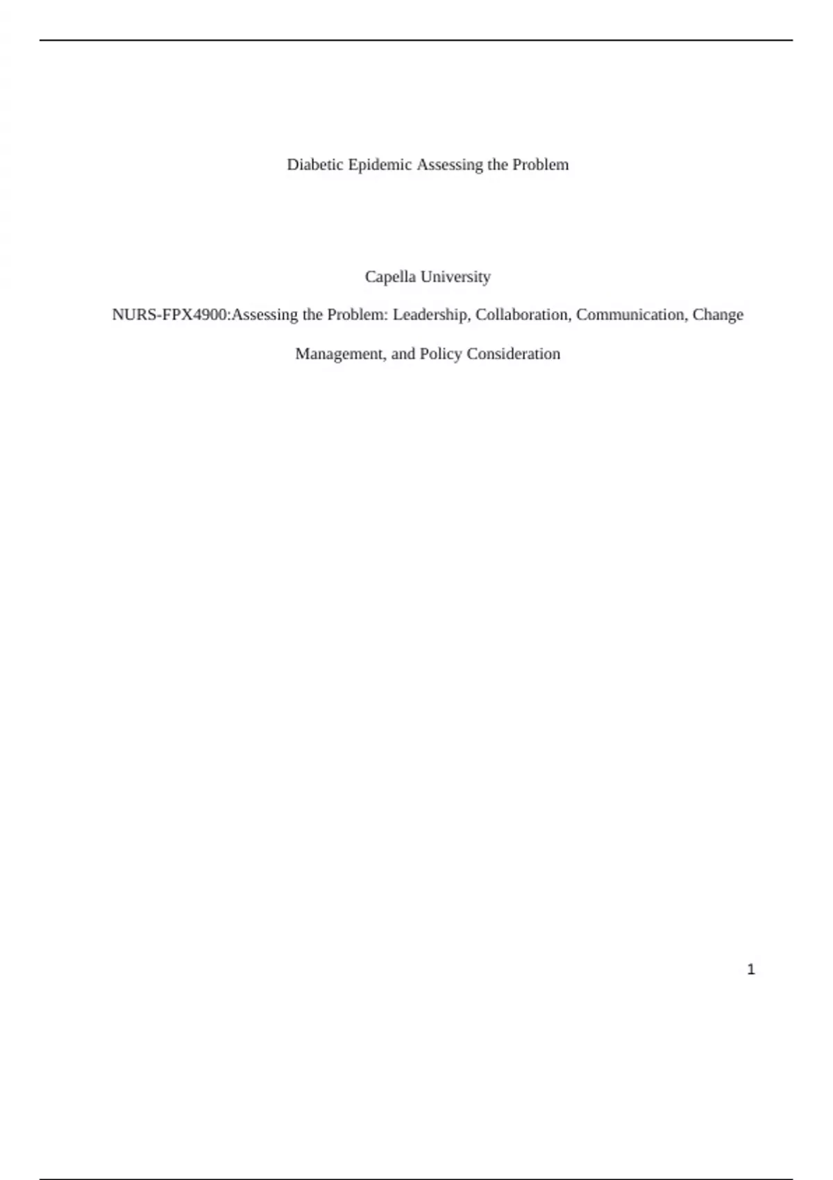 Summary Diabetic Epidemic Assessing the Problem Capella University NURS-FPX4900:Assessing the Pro