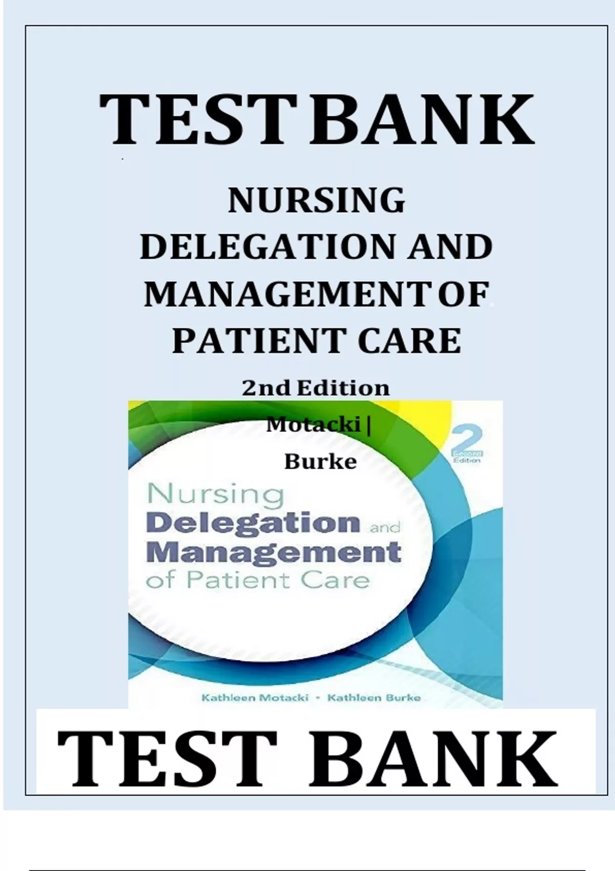 TEST BANK FOR NURSING DELEGATION AND MANAGEMENT OF PATIENT CARE 2nd Edition Motacki | Burke | LATEST TEST BANK FOR NURSING DELEGATION AND MANAGEMENT OF PATIENT CARE 2nd Edition Motacki | Burke | LATEST TEST BANK FOR NURSING DELEGATION AND MANAGEMENT OF PATIENT CARE 2nd Edition Motacki | Burke | LATEST