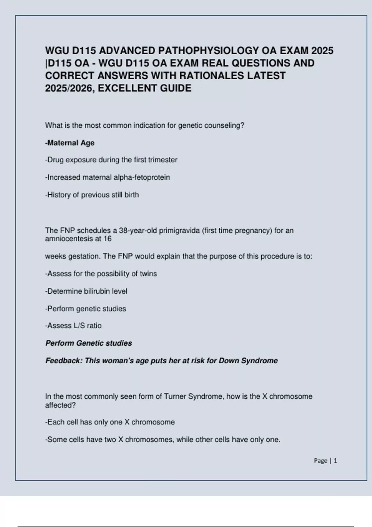WGU D115 ADVANCED PATHOPHYSIOLOGY OA EXAM 2025 |D115 OA - WGU D115 OA EXAM REAL QUESTIONS AND CORRECT ANSWERS WITH RATIONALES LATEST 2025/2026, EXCELLENT GUIDE