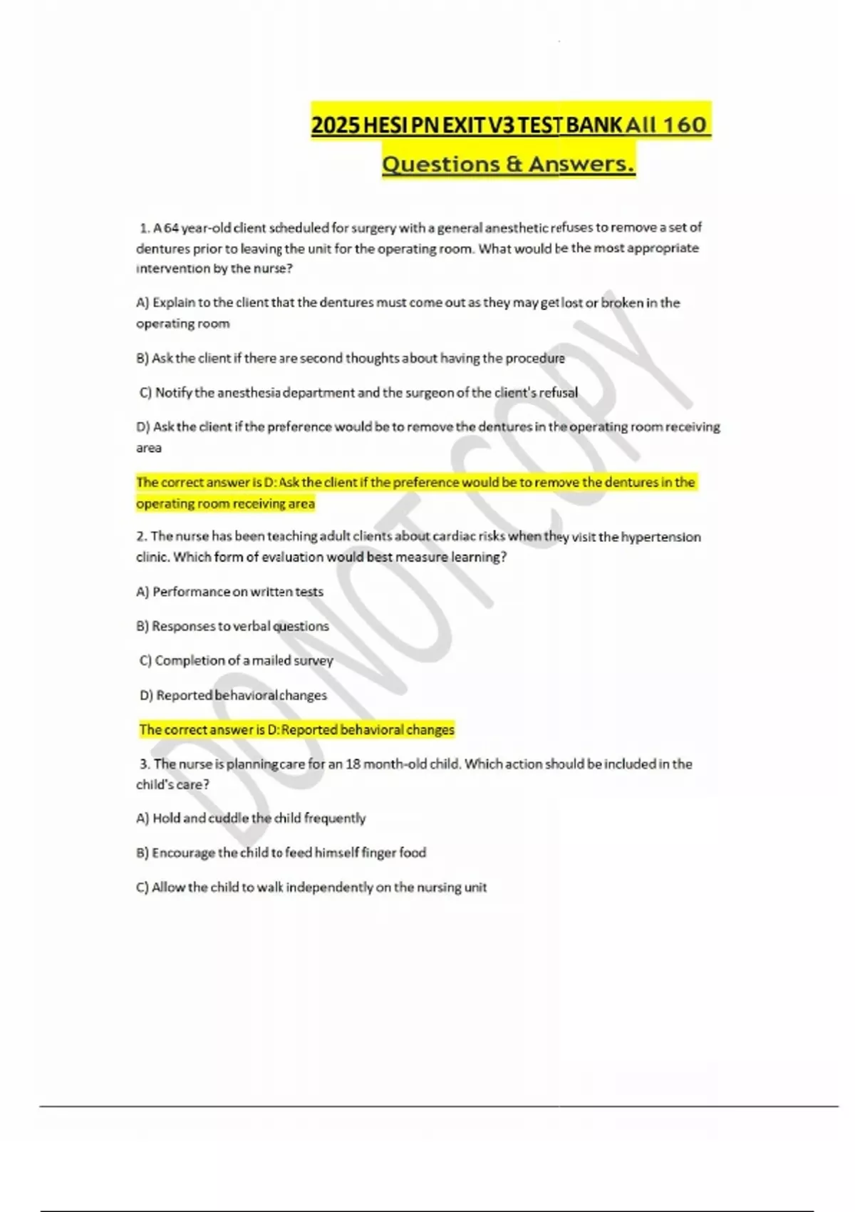 2025 HESI PN EXIT V3 TEST BANK All 160 Questions & Answers.