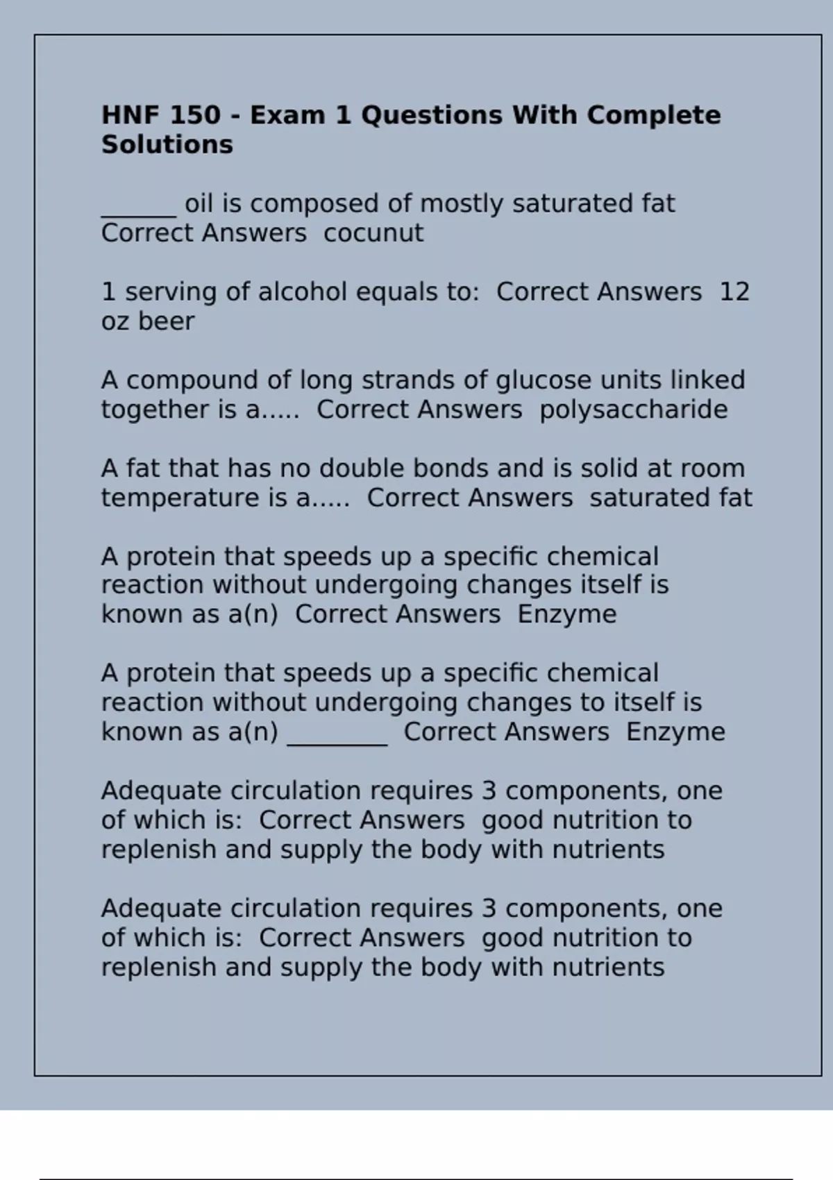 HNF 150 - Exam 1 Questions With Complete Solutions