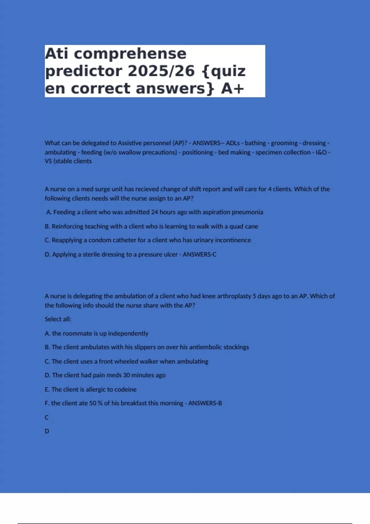 en correct answers} A+