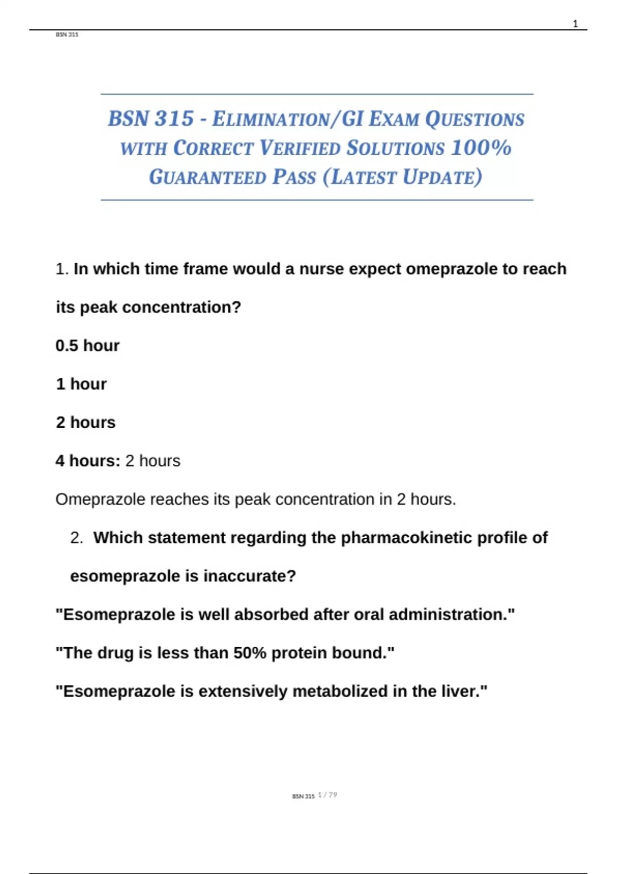 1. In which time frame would a nurse expect omeprazole to reach