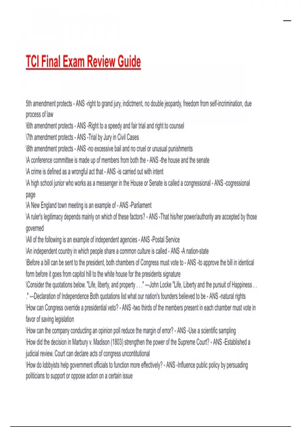 TCI Final Exam Review Guide