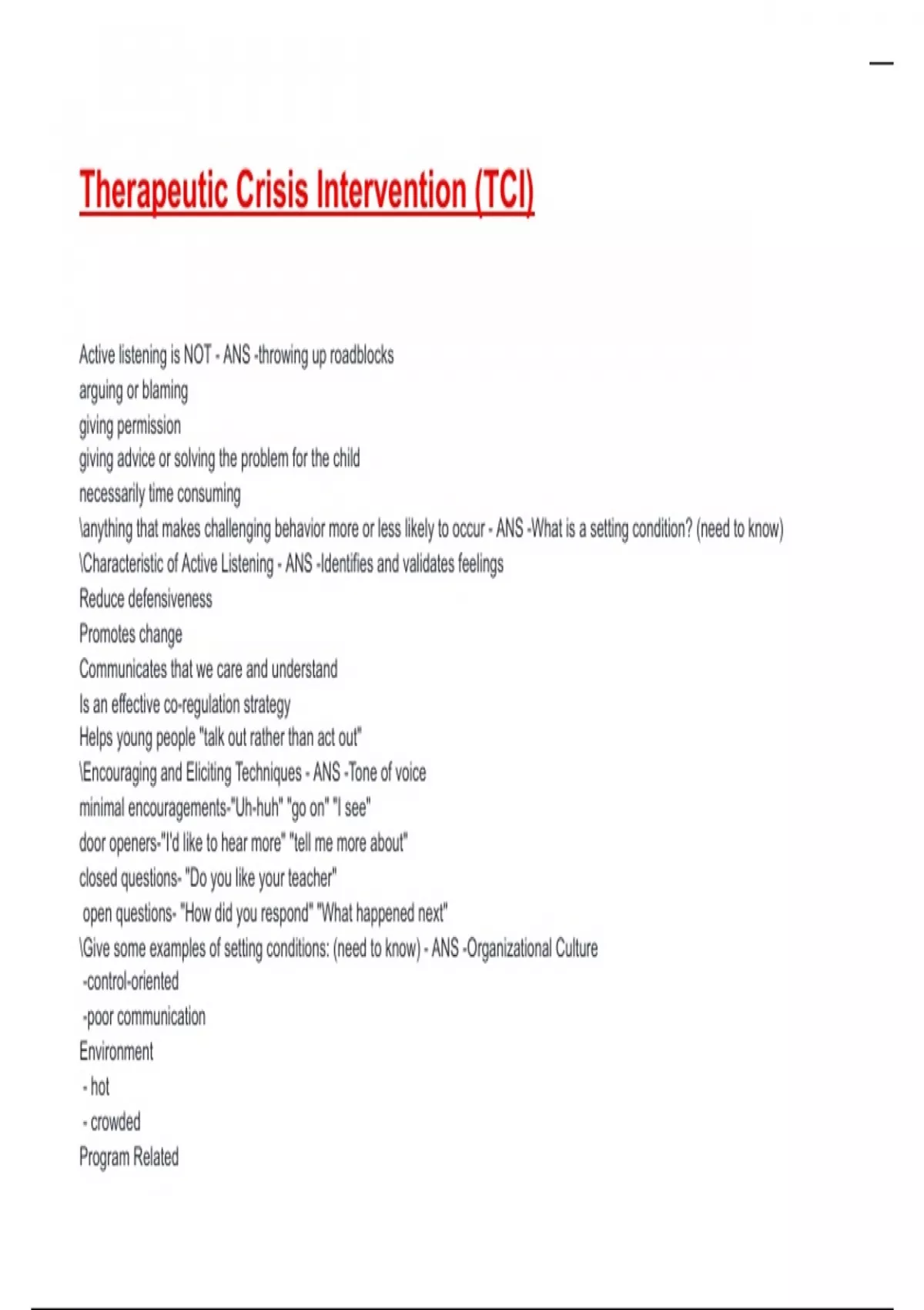 \Characteristic of Active Listening - ANS -Identifies and validates feelings