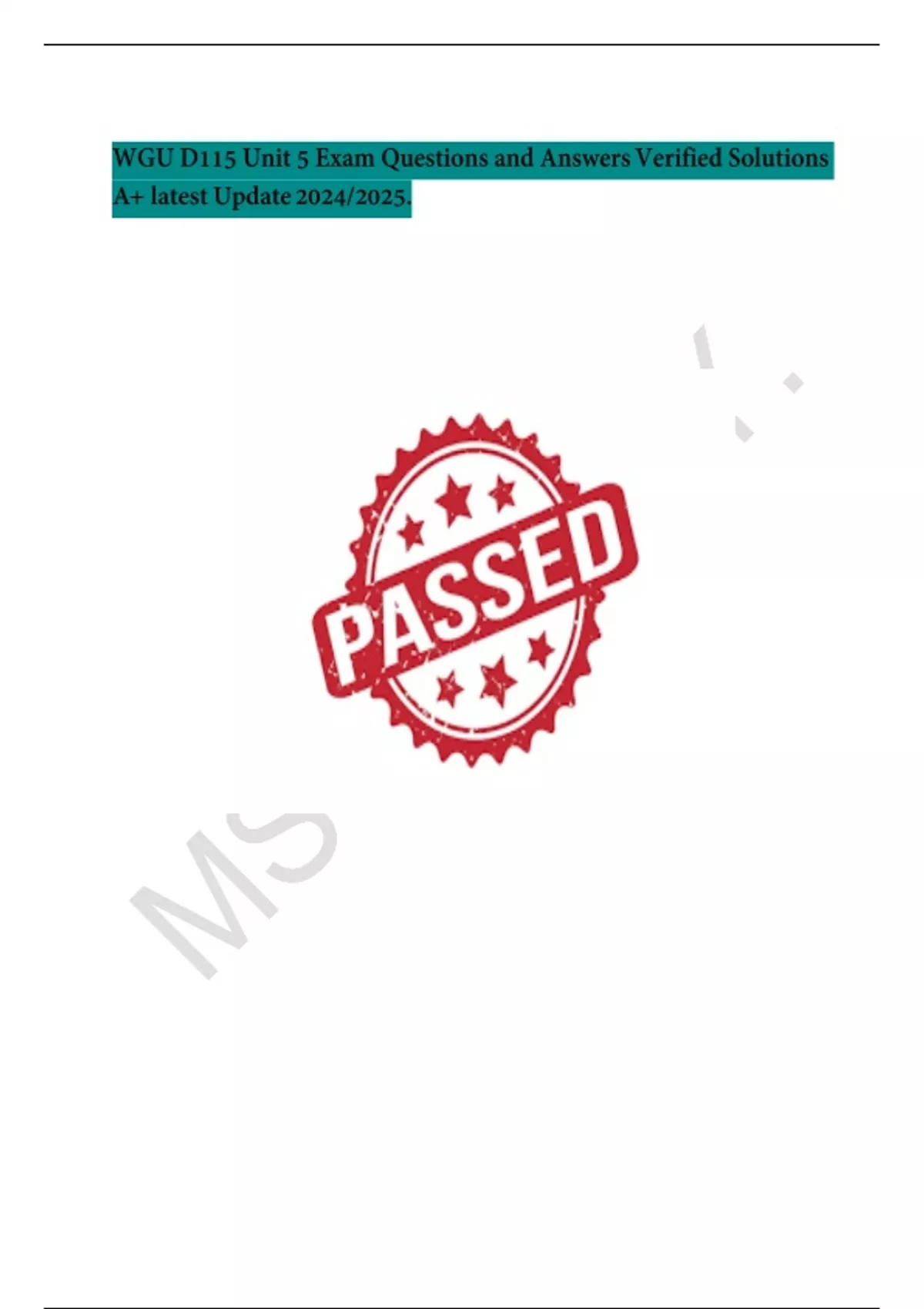 WGU D115 Unit 5 Exam Questions and Answers Verified Solutions A+ latest Update 2024/2025.