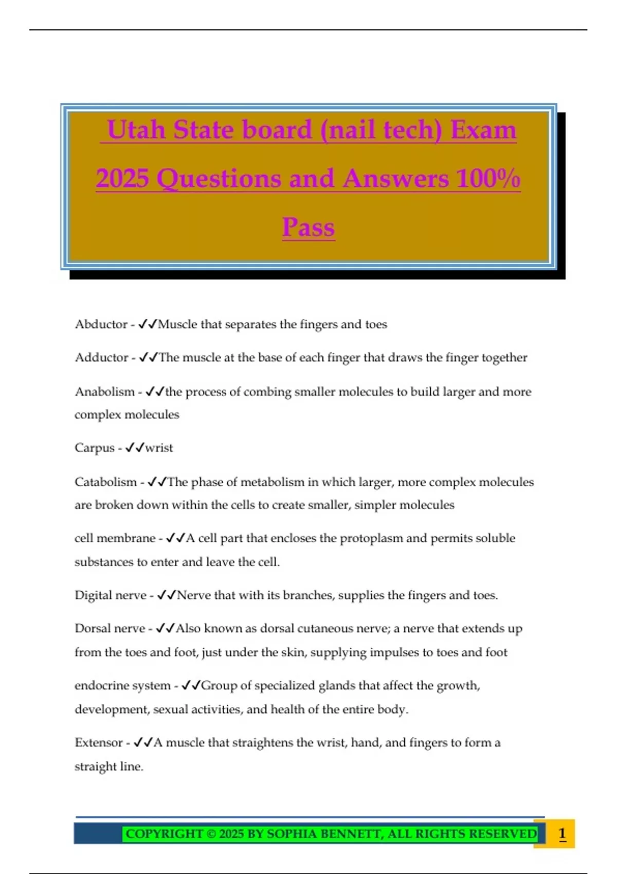 COPYRIGHT © 2025 BY SOPHIA BENNETT, ALL RIGHTS RESERVED 1