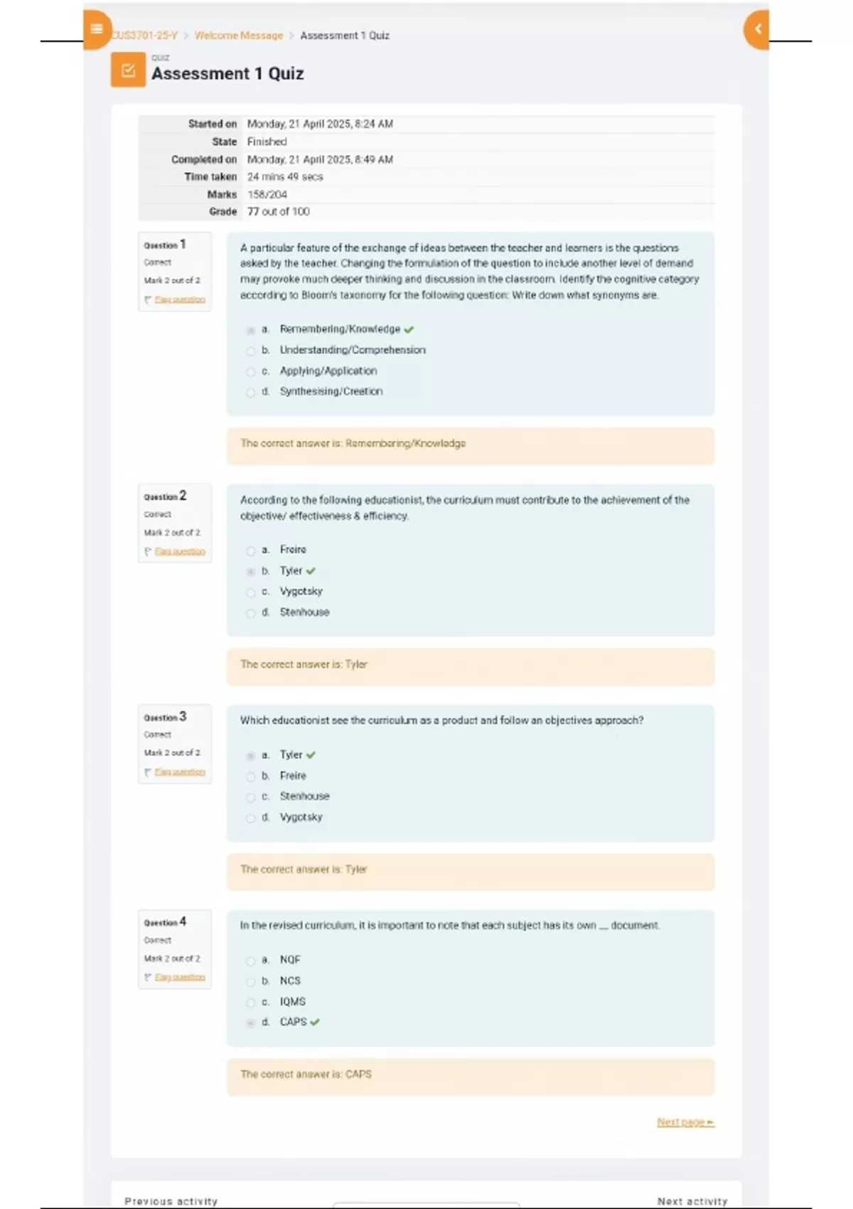 This document contains the full answers to CUS3701 Assignment 1 Quiz for the University of South Africa (UNISA). It is carefully compiled, easy to follow, and based on the latest study material and guidelines for 2025. The document provides accurate solutions, well-structured explanations, and helps students understand the concepts of environmental education, sustainability, and social responsibility covered in this module. Perfect for exam preparation and assignment. Thank you for your support!